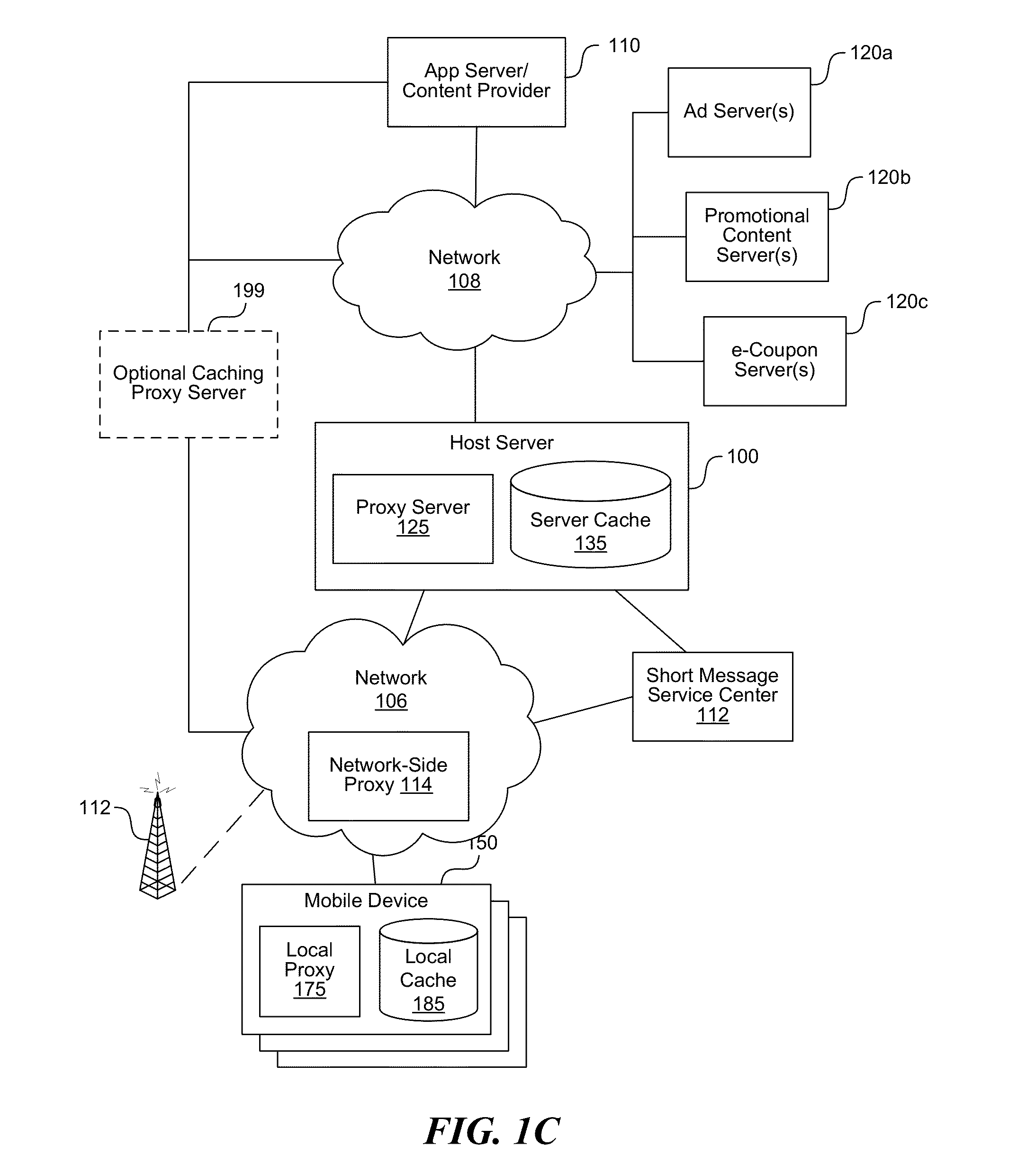 The proxy server can detect new or changed data at a monitored content source and transmits a message to the mobile device notifying it of such a change such that the mobile device (or the local proxy on the mobile device) can take appropriate action (e.g., to invalidate the cache elements in the local cache). In some instances, the proxy server (e.g., the caching policy manager 455) upon detecting new or changed data can also store the new or changed data in its cache (e.g., the server cache 135 of the examples of FIG. 1C). The new/updated data stored in the server cache 435 can be used in some instances to satisfy content requests at the mobile device; for example, it can be used after the proxy server has notified the mobile device of the new/changed content and that the locally cached content has been invalidated.