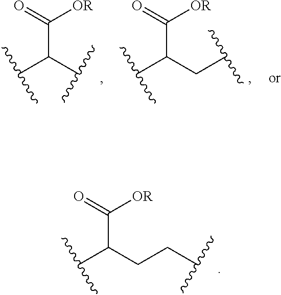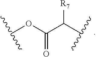 • each R7 is independently e, H, or straight or branched C1-C10 alkyl which can be optionally substituted with OH, NH2, CO2R, CONH2, phenyl, C6H4OH, imidazole or arginine;