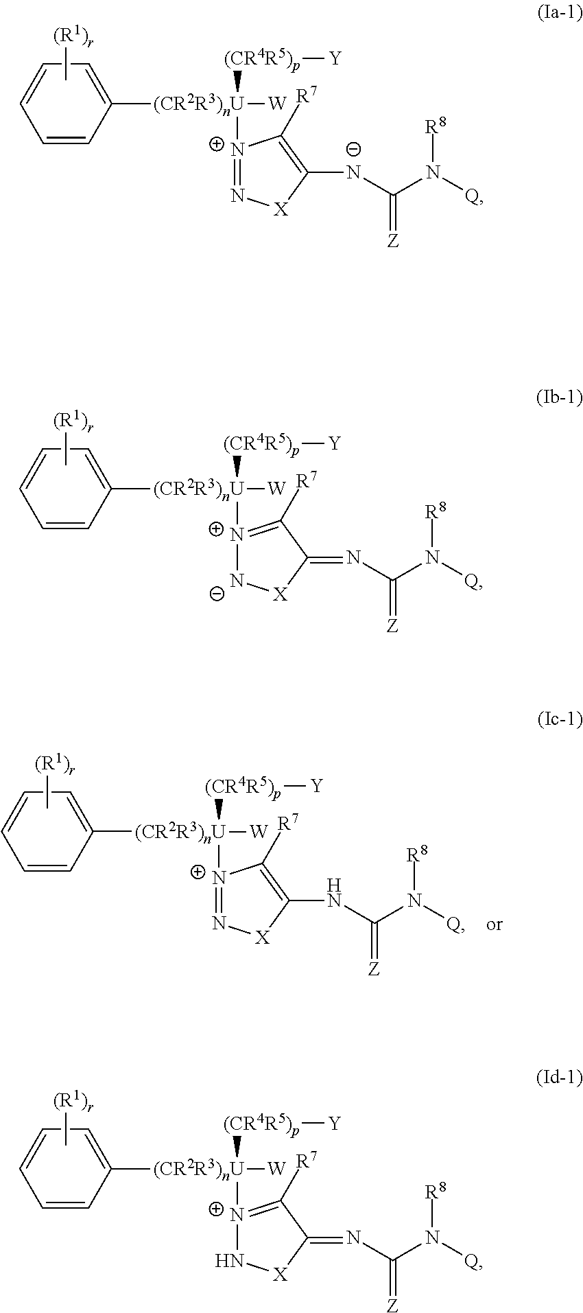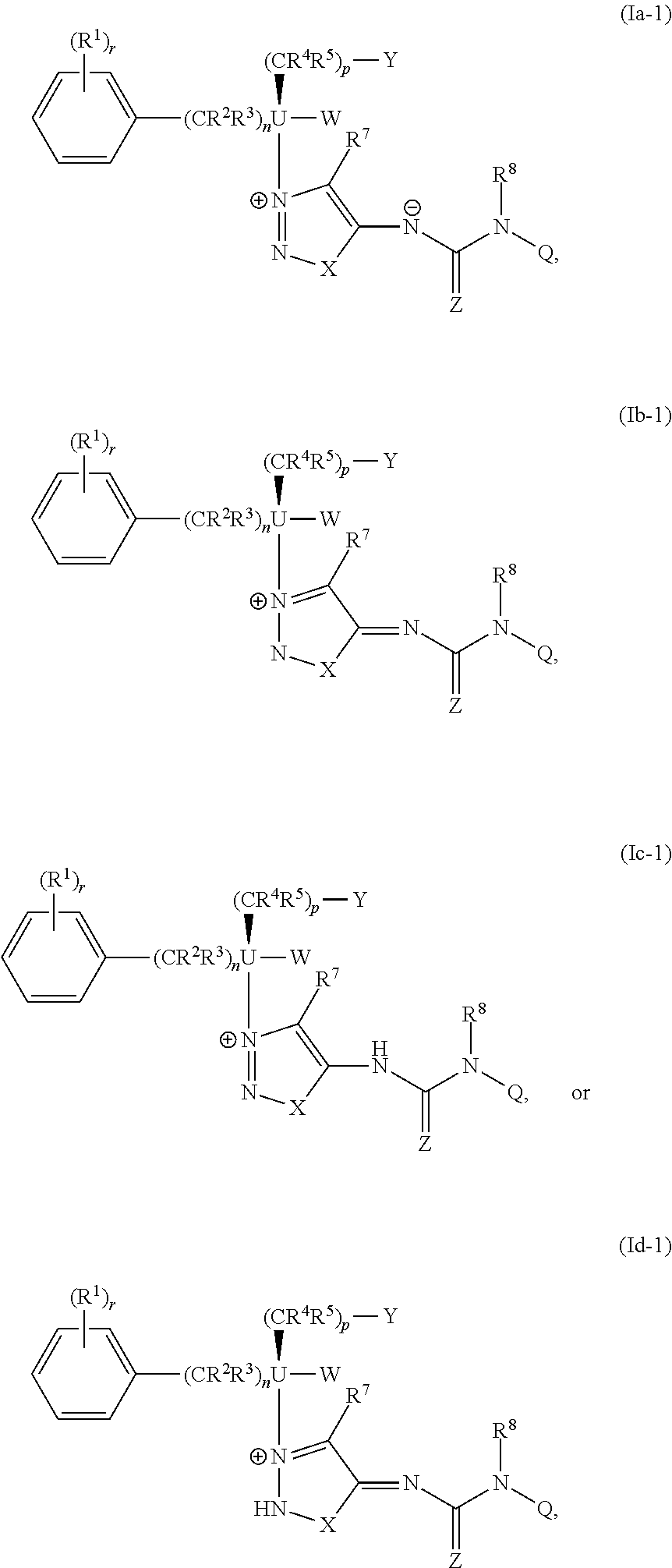 The present disclosure describes compounds, compositions, and formulations comprising therapeutically or prophylactically active compounds or pharmaceutically acceptable salts thereof, for treating and/or preventing dyskinesias or other disorders, and methods for treating dyskinesia or other disorders. Sydnocarb (i.e., 3-(β-phenylisopropyl)-N-phenylcarbamoylsydnonimine), also known as mesocarb, is a psychomotor stimulant. In Russia, sydnocarb has been used for over 30 years to treat a variety of neuropsychiatric comorbidities such as asthenia, apathy, and adynamia (Anokhina et al., Zh Nevropatol Psikhiatr Im S S Korsakova, 1974, 74, 594-602; Vinar et al., Neuropsychopharmacology, 1991, 5, 201-217; and Cody, J. Occup. Environ. Med., 2002, 44, 435-450). Although mostly anecdotal, evidence may suggest that sydnocarb increases endurance during heavy physical activity and resistance to environmental stressors such as hypothermia, low gravity, and oxygen deprivation. Sydnocarb may also have beneficial effects in treating alcohol abuse, attention deficit hyperactivity disorder (ADHD), and cognitive impairment (Rudenko et al., Agressologie, 1979, 20, 265-270; Vinar et al., supra; Cody, supra). Although sydnocarb-induced facilitation of dopamine (DA)-mediated transmission has been well established in microdialysis studies, the exact nature of this action (i.e., DA release versus DA transporter (DAT) inhibition) is not clear (Gainetdinov et al., Eur. J. Pharmacol., 1997, 340, 53-58; Afanas'ev et al., Pharmacol. Biochem. Behav., 2001, 69, 653-658; Anderzhanova et al., Eur. J. Pharmacol. 2001, 428, 87-95). More recently, it has been demonstrated that sydnocarb has DAT activity and lacks the rebound hypersomnolence, characteristic of compounds that cause dopamine release (Gruner et al., J. Pharmacol. Exp. Therap., 2011, 337, 380-390). It has been reported that sydnocarb attenuates noradrenaline reuptake based on experiments in rat synaptosomes (Erdö et al., Pol. J. Pharmacol. Pharm., 1981, 33, 141-147). Sydnocarb is also metabolized to D-amphetamine (D-AMPH) in humans and animals, but the sole of D-AMPH in the net in-vivo effects of sydnocarb is unclear. In vivo pharmacological profiles of sydnocarb and D-AMPH largely overlap, suggesting that either sydnocarb and D-AMPH are functionally indistinguishable or the metabolite D-AMPH contributes significantly to the effects produced by sydnocarb (Gainetdinov et al., supra; Witkin et al., J. Pharmacol. Exp. Ther., 1999, 288, 1298-1310); Anderzhanova et al., Ann. NY Acad. Sci. 2000, 914, 137-145; Flood et al., Psychopharmacology, 2010, 211, 325-336). However, there are some important differences between the two drugs. Unlike D-AMPH, neither significant toxic episodes nor abuse potential have been reported with sydnocarb in humans (Mashkovskii et al., Zh Nevropatol Psikhiatr Im S S Korsakova, 1971, 71, 1704-1709; Rudenko et al., supra). Compared with D-AMPH, the stimulating effects of sydnocarb develop more gradually, last longer, and are not accompanied by pronounced euphoria, motor excitation, or peripheral sympathomimetic effects such as tachycardia and hypertension (Rudenko et al., supra). In animals, sydnocarb produces a slower and more gradual increase in extracellular DA in the rat striatum and nucleus accumbens compared with D-AMPH (Gainetdinov et al., supra; Witkin et al., supra; Anderzhanova et al., supra). Relative to D-AMPH, equimolar doses of sydnocarb produce less hyperlocomotion and stereotype as well as smaller changes in the marker of neurotoxicity such as DA depletion, generation of reactive oxygen species, or increases in specific indices of lipid peroxidation (Gainetdinov et al., supra; Witkin et al., supra; Anderzhanova et al., supra; Afanas'ev et al., supra; Bashkatova et al., Ann. NY Acad. Sci., 2002, 965, 180-192). Furthermore, sydnocarb does not exhibit the rebound hypersomnolence seen with D-AMPH as a result of the dopamine release characteristics associated with D-AMPH (Gruner et al., supra). Several studies aimed at investigating the utility of DAT inhibitors in Parkinson's Disease have indicated very little or no utility towards this disease, especially as regards the potential utility of DAT inhibitors towards L-dopa-induced dyskinesias associated with Parkinson's Disease (Lökk, J., Neuropsych. Dis. Treat., 2010, 6, 93-97; Hauser et al., Mov. Disord., 2007, 22, 359-365; and Rascol et al., Arch Neurol., 2008, 65, 577-583). The present disclosure encompasses compounds, compositions, and formulations that may be useful in treating dyskinesia or other disorders in a mammal. In some embodiments, the mammal has or is suspected of having a dyskinesia or another disorder. In particular, the compounds, compositions, and formulations useful in treating a dyskinesia or other disorders include, but are not limited to, compounds, compositions, and formulations comprising a compound of Formula I set forth herein. The present disclosure provides compounds of Formula Ia-1, Formula Ia-2, Formula Ib-1, Formula Ib-2, Formula Ic-1, Formula Ic-2, Formula Id-1, or Formula Id-2: or a pharmaceutically acceptable salt thereof, wherein: U is C or N; each R1 is, independently, H, C1-C6alkyl, C2-C6alkenyl, C2-C6alkynyl, C1-C6alkoxy, C1-C6alkylthio, —CN, —OH, —SH, halo, haloalkyl, —NO2, —N(═O)2, —C(═O)OH, —NH2, —CF3, —NH(C1-C6alkyl), —N(C1-C6alkyl)2, —C(═O)H, carbalkoxy, carboxamido, alkylsulfonyl, alkylsulfonyloxy, aminosulfinyl, dialkylaminosulfinyl, monoalkylaminosulfinyl, aminosulfonyl, monoalkylaminosulfonyl, dialkylaminosulfonyl, alkylsulfonylamino, hydroxysulfonyloxy, alkoxysulfonyloxy, alkylsulfonyloxy, hydroxysulfonyl, alkoxysulfonyl, alkylsulfonylalkyl, aminosulfonylalkyl, monoalkylaminosulfonylalkyl, dialkylaminosulfonylalkyl, aminosulfinylalkyl, monoalkylaminosulfinylalkyl, or dialkylaminosulfinylalkyl, where r is 0, 1, 2, 3, 4, or 5; each R2 and R3 is, independently, H, C1-C6alkyl, C2-C6alkenyl, C2-C6alkynyl, C1-C