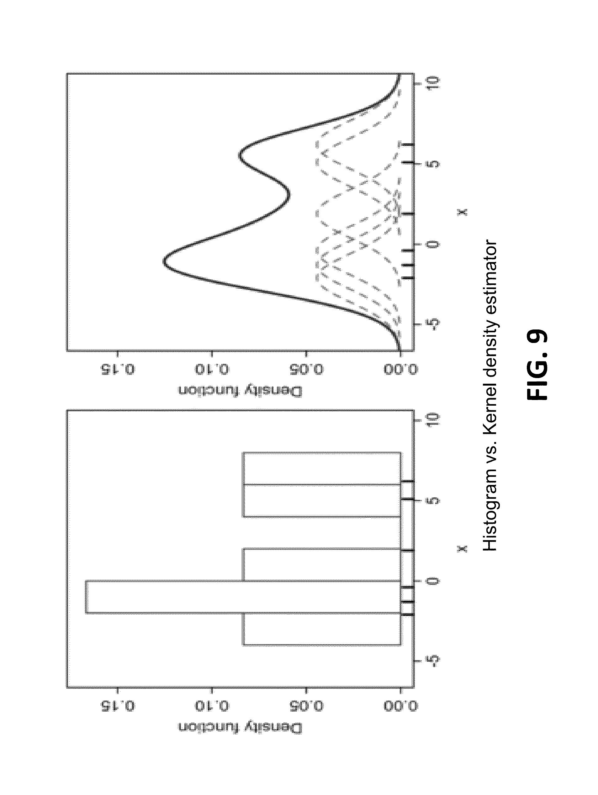 FIGS. 9-10 are graphs comparing histograms to a kernel density estimator according to an aspect.