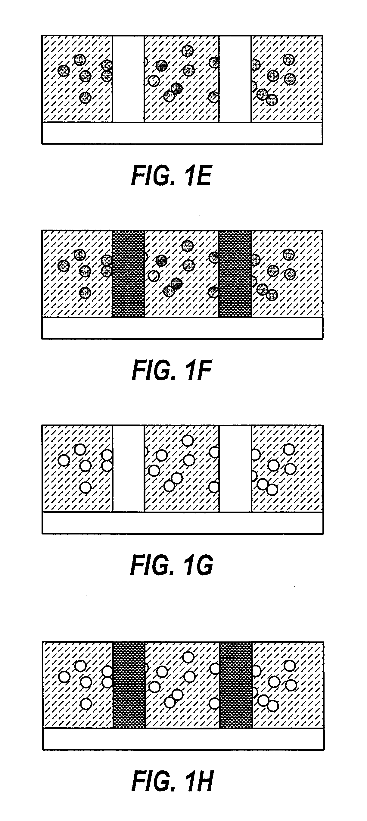 receiving a substrate with a cured porous dielectric layer formed thereon, said cured porous dielectric layer including: (i) pores formed by the removal of a pore-forming agent during a curing process and subsequently back-filled with a pore-filling agent, and (ii) a pattern formed therein using a patterning process that has been metallized and planarized, wherein said pores are characterized by an average pore diameter less than 10 nm, wherein a pattern spacing of said pattern is characterized by a dimension less than or equal to 50 nm, and further wherein said pore-filling agent as back-filled within said pores has a thermal decomposition temperature greater than 250 degrees C. and less than 450 degrees C.; and removing said pore-filling agent from said pores in said cured porous dielectric layer by performing the following: