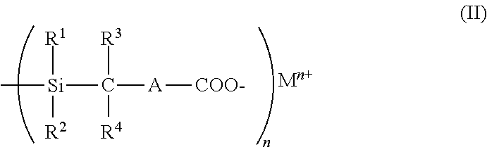 Preferably, the inventive end group-functionalized polymers may be in the form of carboxylates having end groups of the formula (II): where