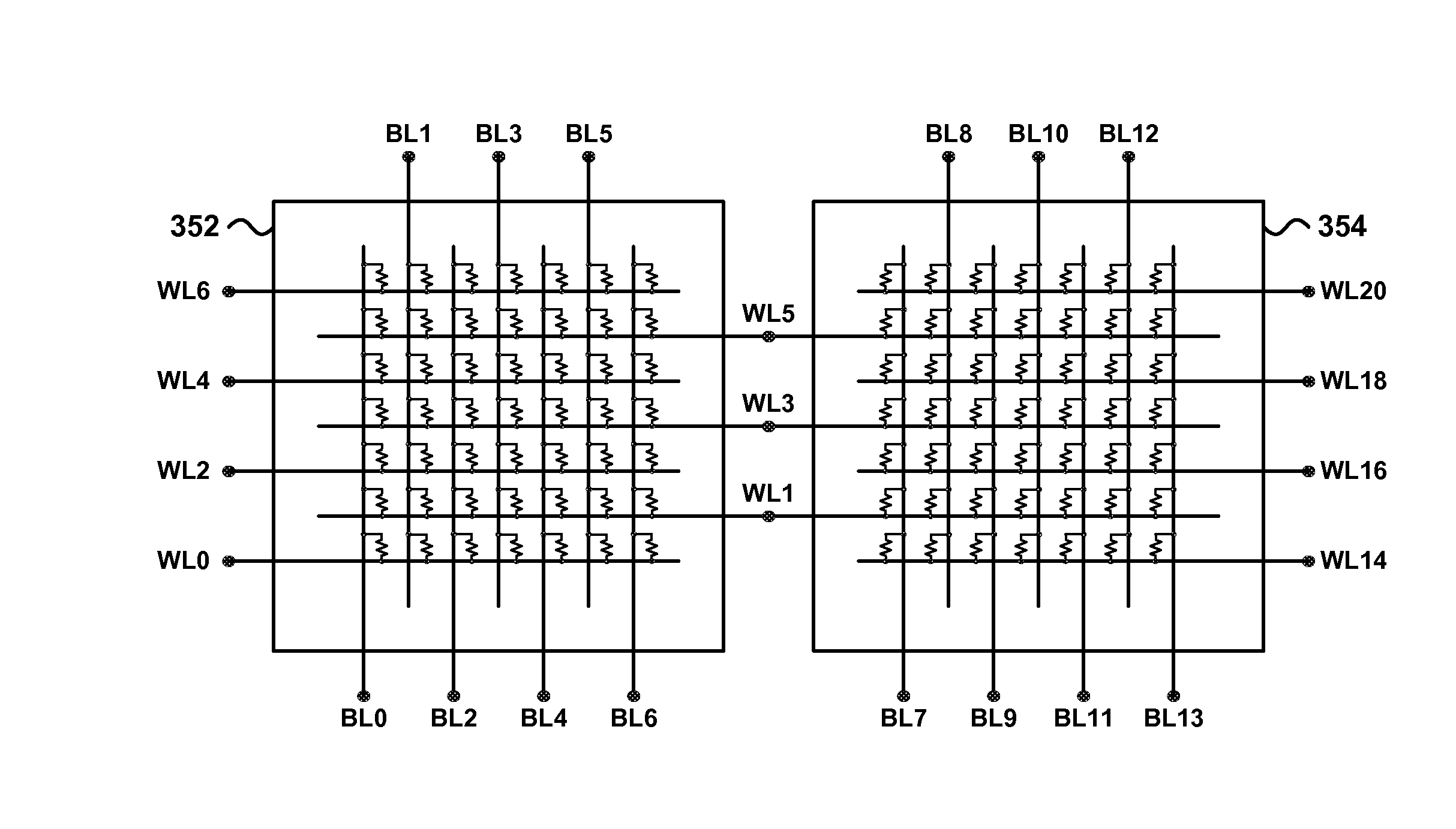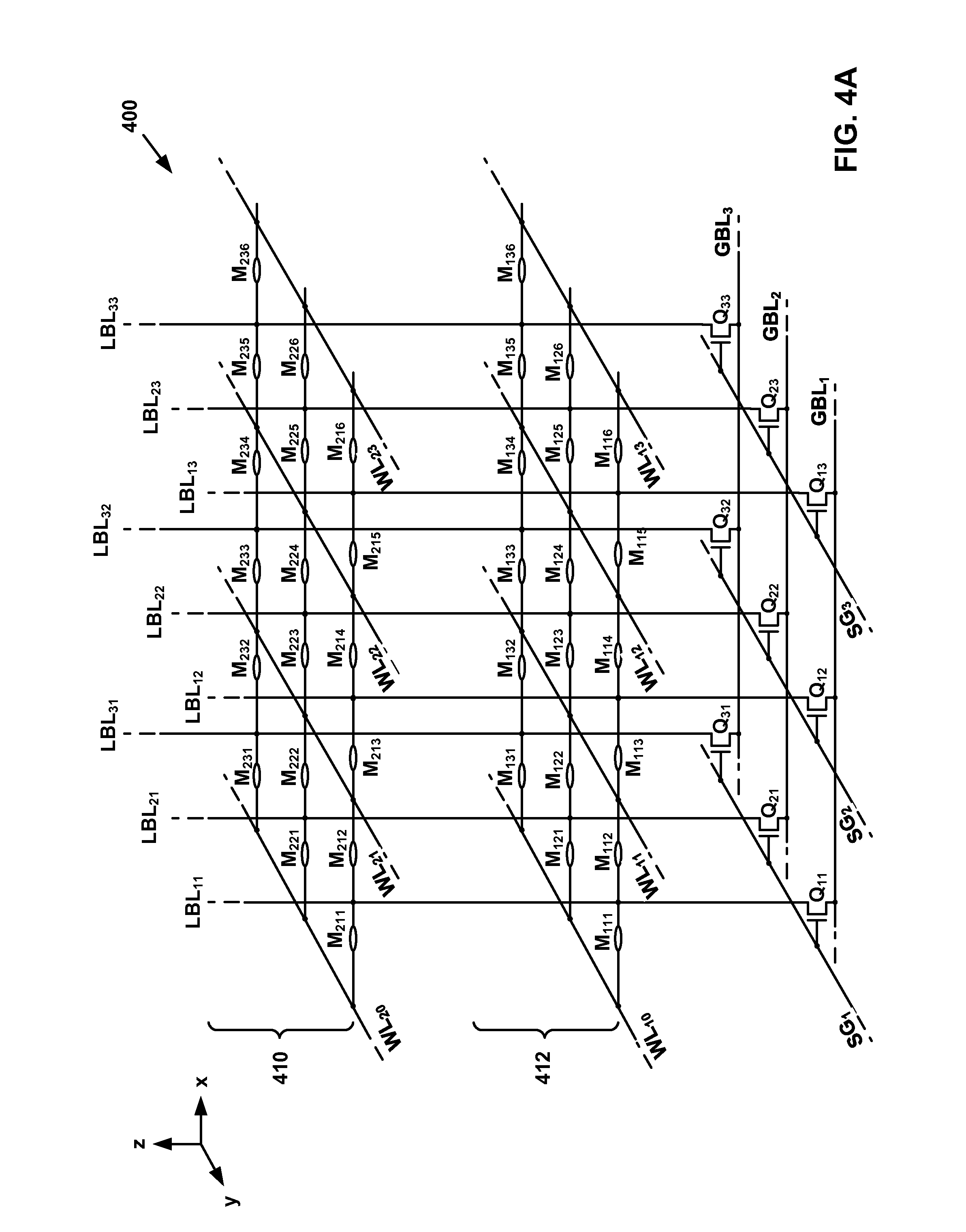 providing a plurality of global bit lines above a substrate, each global bit line having a long axis; providing a plurality of vertically-oriented bit lines above the global bit lines, each of the vertically-oriented bit lines having a half-pitch; providing a plurality of word lines above the global bit lines, each of the word lines having the half-pitch; coupling a plurality of memory cells between the vertically-oriented bit lines and the word lines; coupling a plurality of vertically-oriented bit line select transistors between the vertically-oriented bit lines and the global bit lines, each vertically-oriented bit line select transistor comprising a width, a first control terminal and a second control terminal; and offsetting vertical bit lines disposed above adjacent global bit lines from one another in a direction along the long axis of the global bit lines. 16. The method of the vertically-oriented bit line select transistors comprise field effect transistors; the first control terminal comprises a first gate terminal; and the second control terminal comprises a second gate terminal. 17. The method of 18. The method of 19. The method of 20. The method of