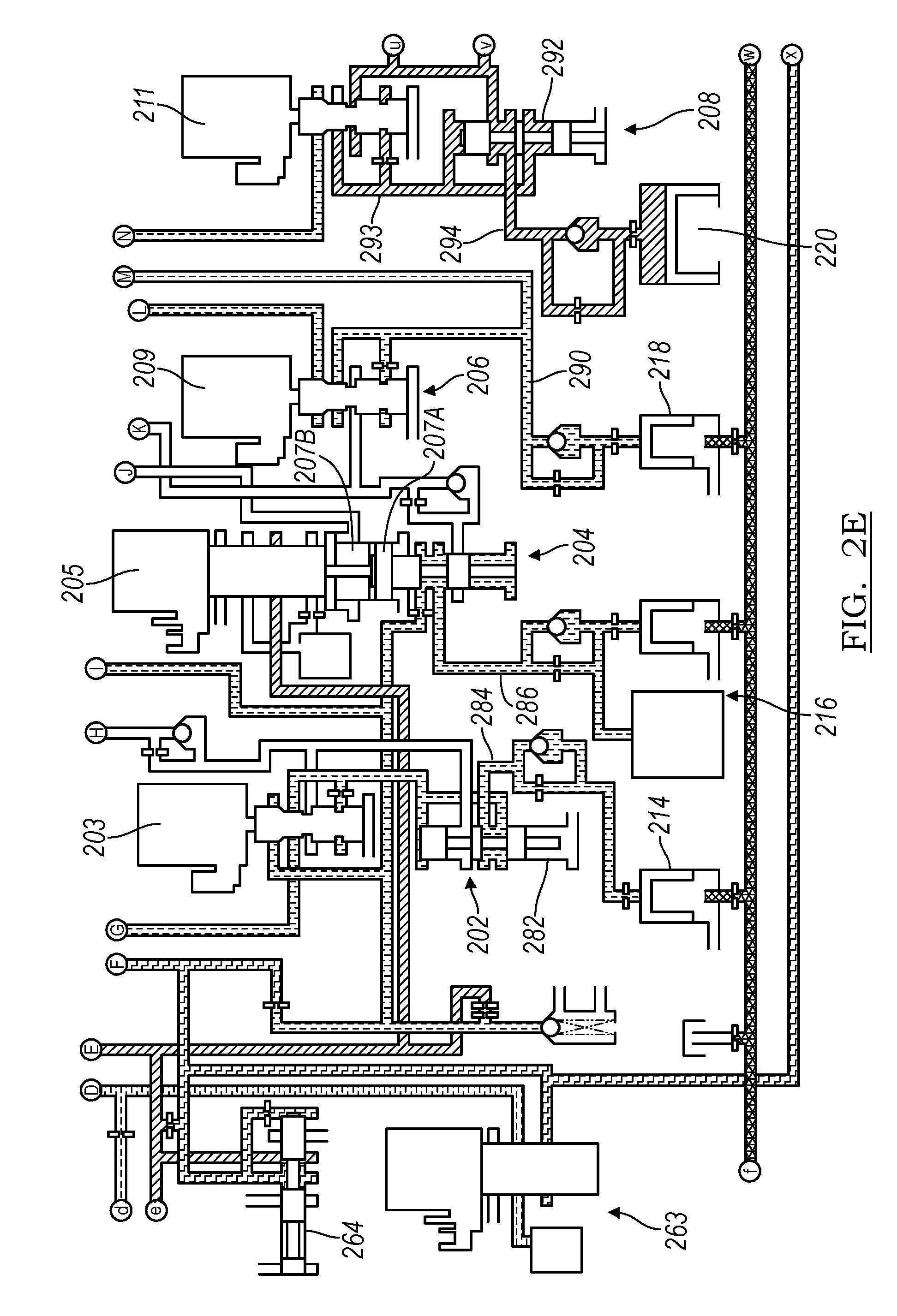 FIGS. 2A-2F describe another embodiment of a hydraulic control system in accordance the principles of the present invention; and