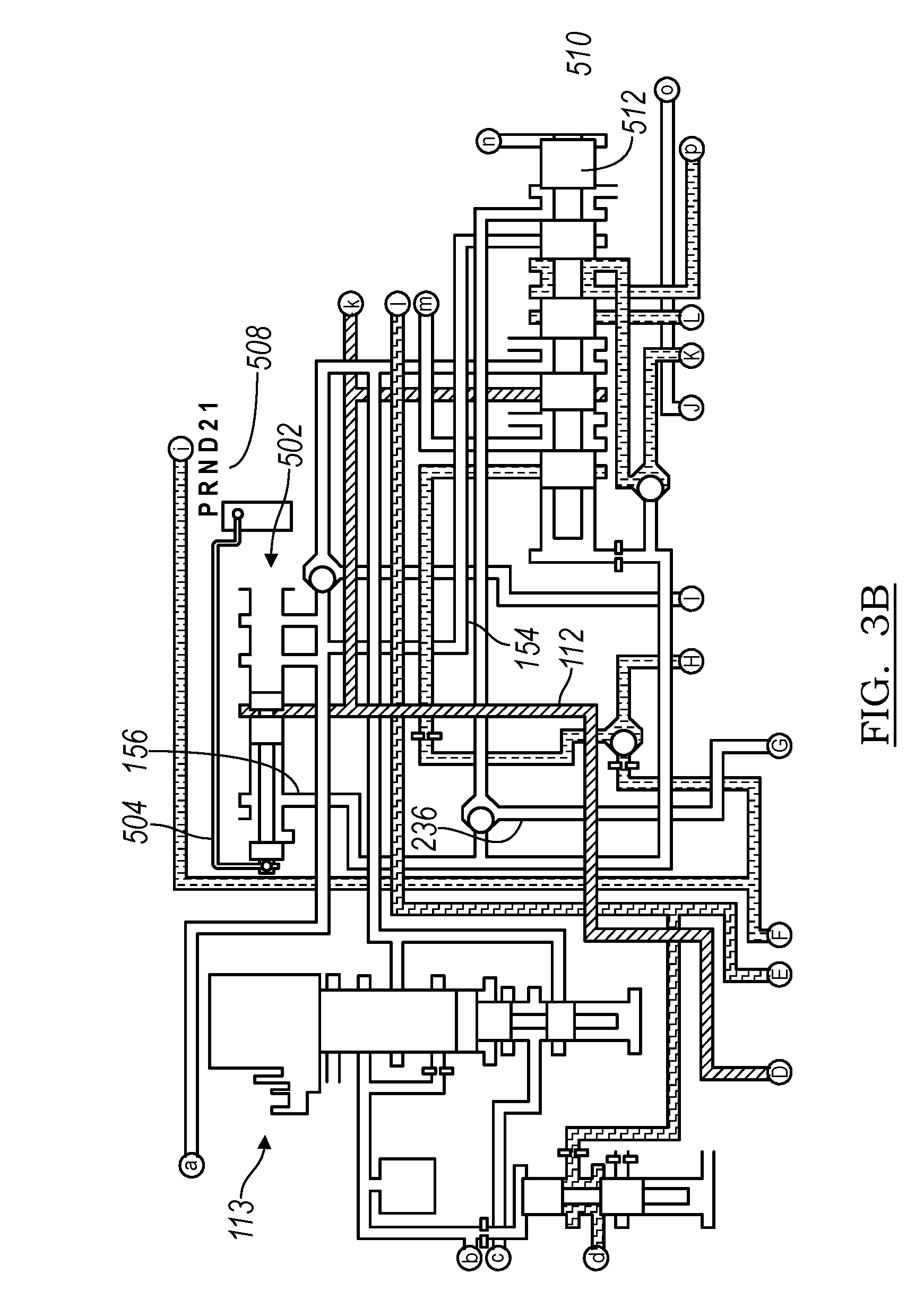 FIGS. 3A-3F describe yet another embodiment of a hydraulic control system having a manual valve in accordance the principles of the present invention.