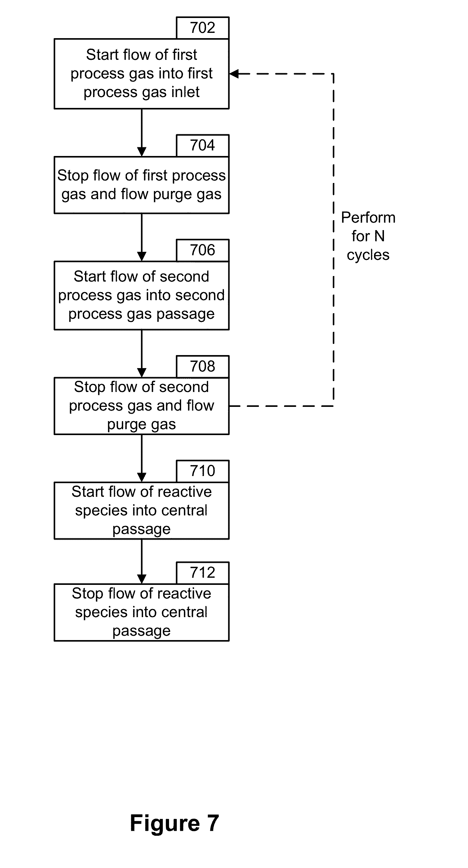 (iv) cause, after (iii), the third process gas valve to flow the third process gas into the secondary inlet; and (v) cause, after (iv), the third process gas valve to stop the flow of the third process gas into the secondary inlet.