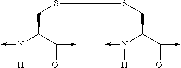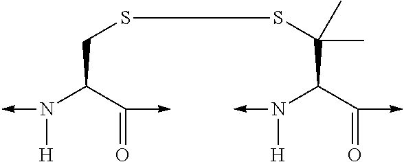 X is selected from the group consisting of —CH2—S—S—CH2—, —C(CH3)2—S—S—CH2—, —CH2—S—S—C(CH3)2—, —C(CH3)2—S—S—C(CH3)2—, —(CH2)2—S—S—CH2—, —CH2—S—S—(CH2)2—, —(CH2)2—S—S—(CH2)2—, —C(CH3)2—S—S—(CH2)2—, —(CH2)2—S—S—C(CH3)2, —(CH2)tC(O)—NR8—(CH2), and —(CH2)r— NR8—C(O)—(CH2);
