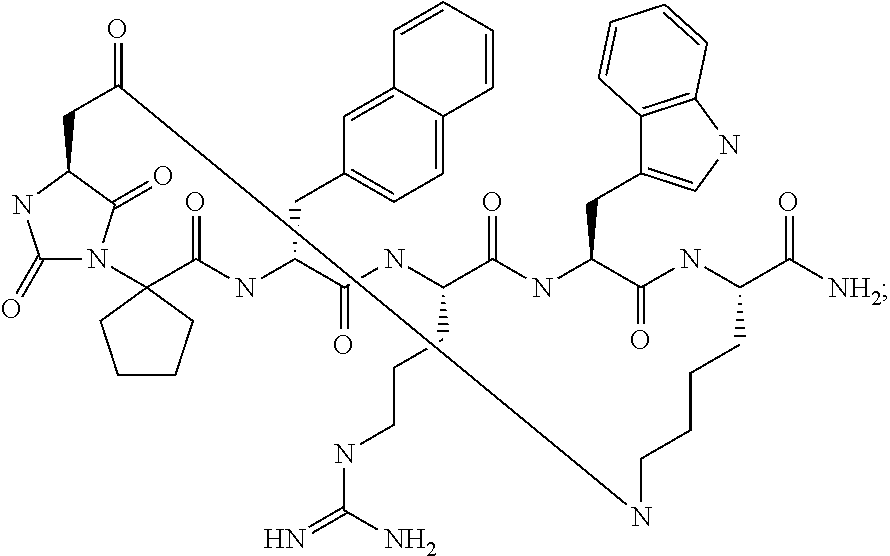 cyclo[Hydantoin(C(O)-(Asp-Aic))-D-2-Nal-Arg-Trp-Lys]-NH2;