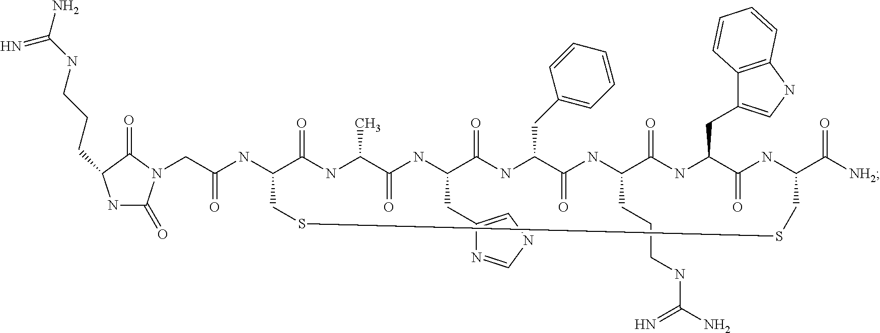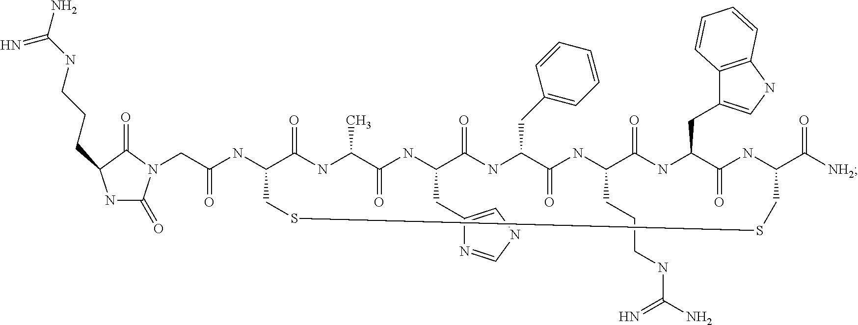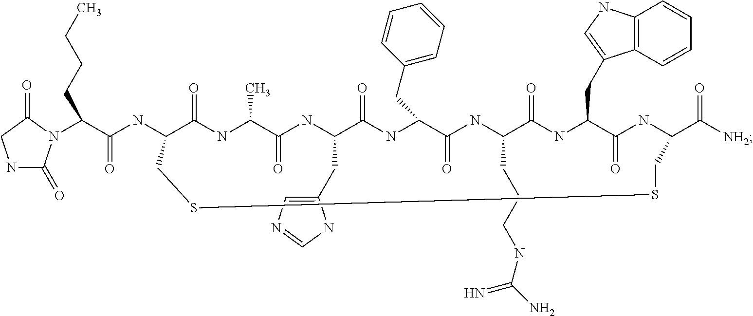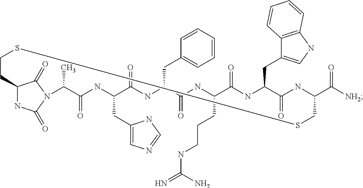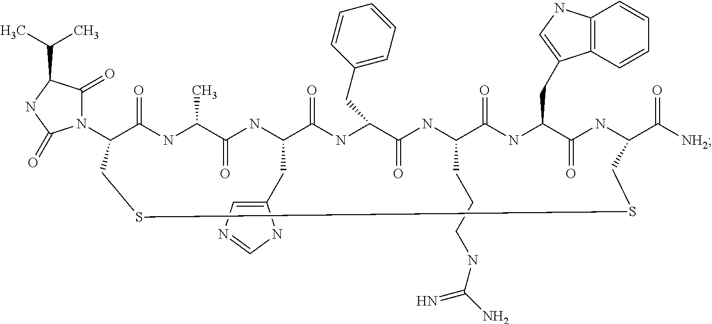cyclo[Hydantoin(C(O)-(Glu-D-Ala))-His-D-Phe-Arg-Trp-Dap]-NH2;