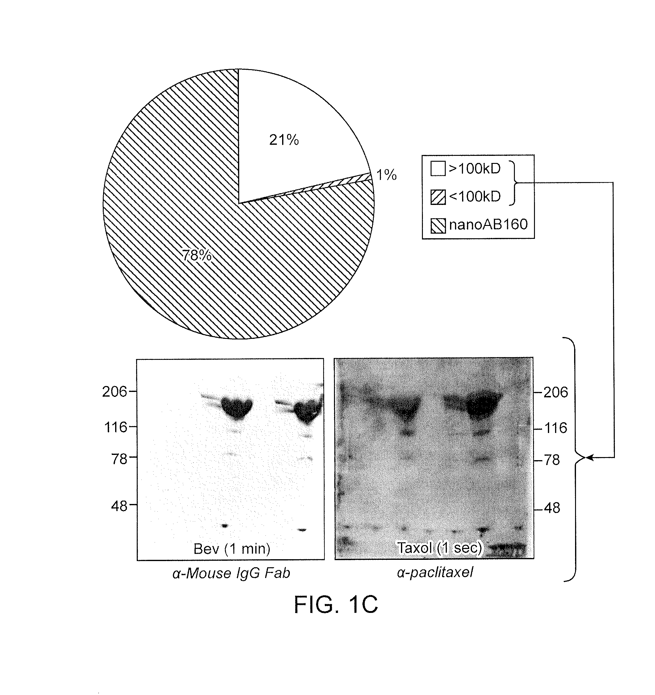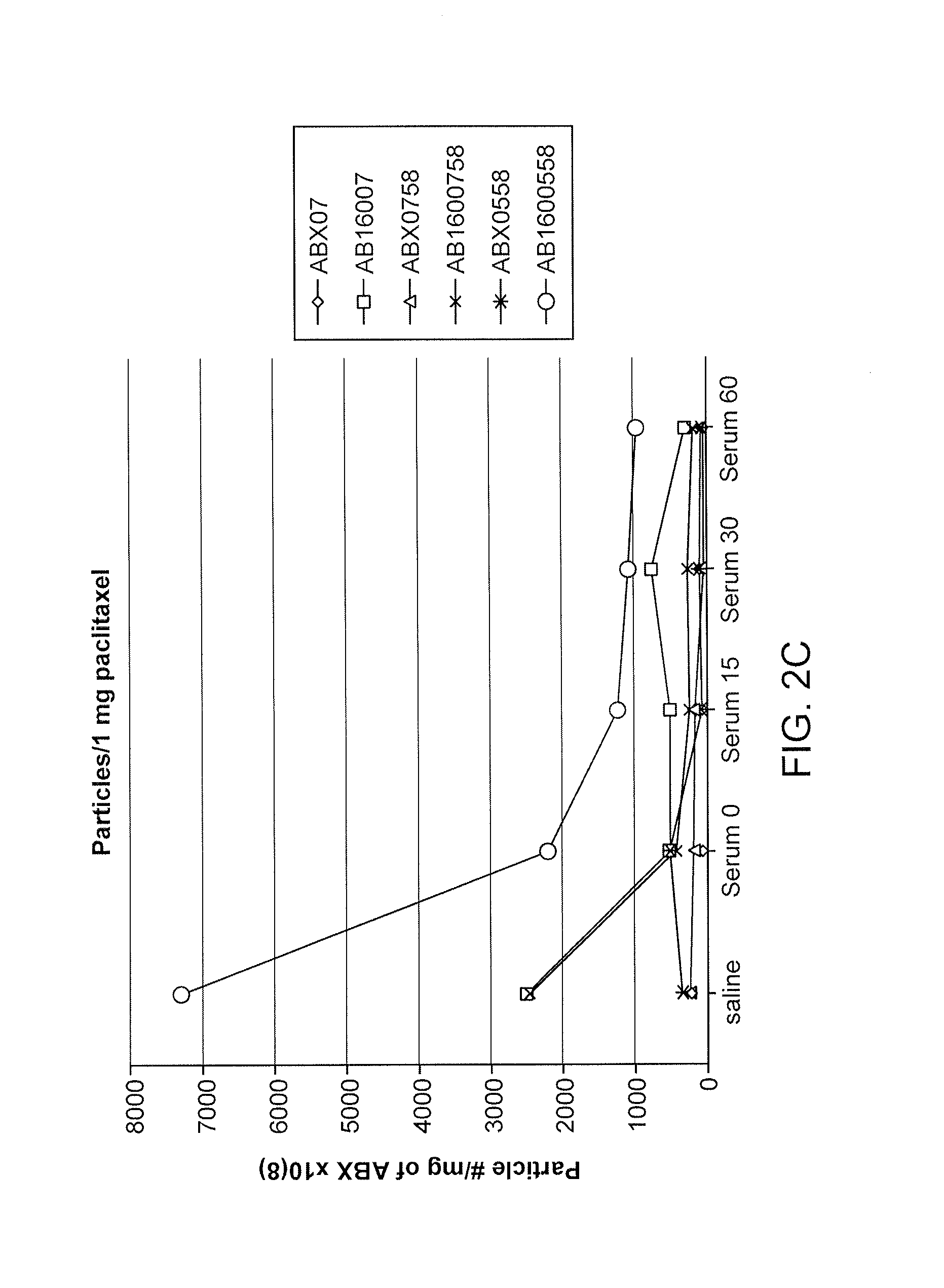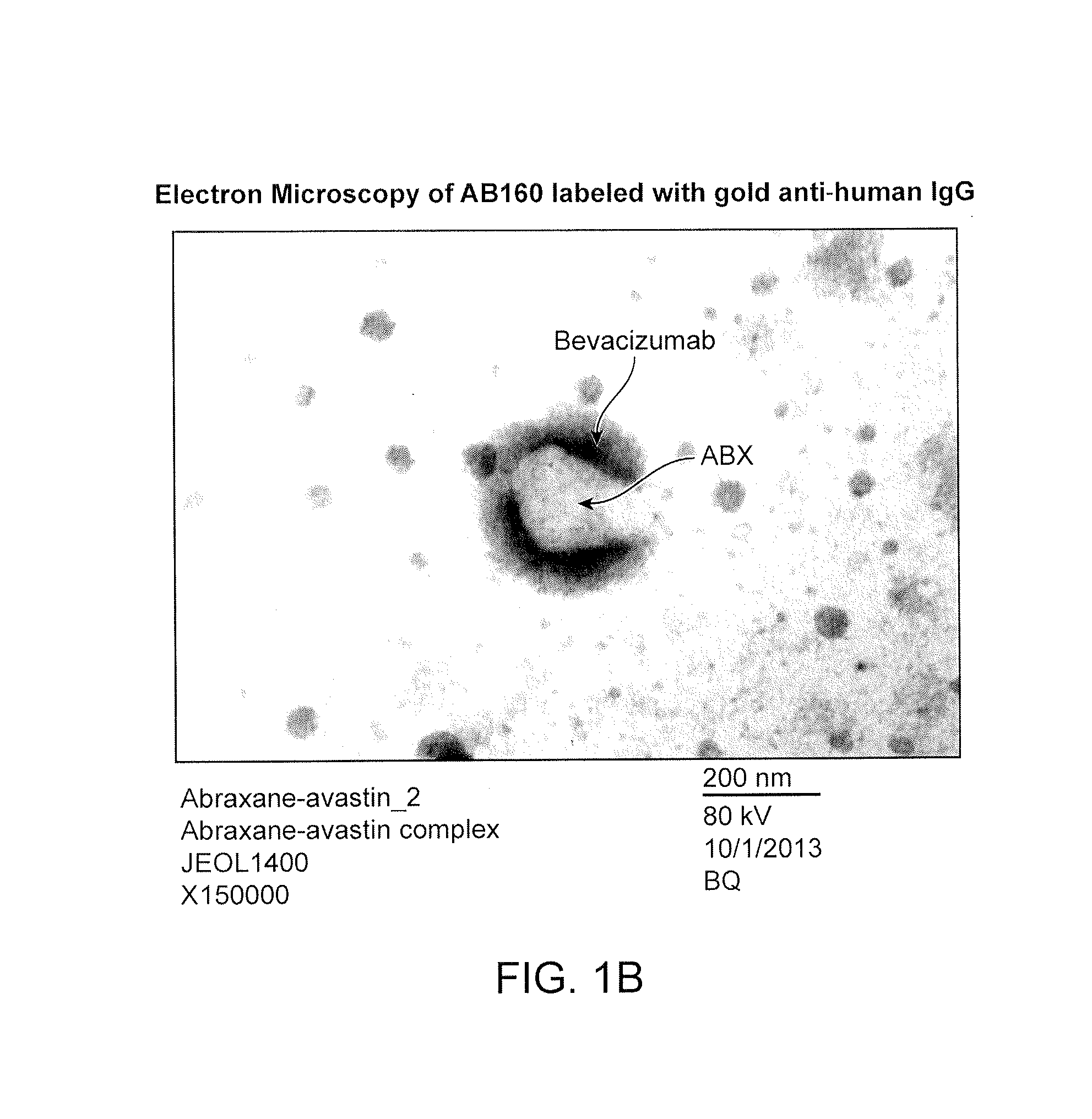 Thus, the ABX/BEV complex (AB160) is superior to sequential administration of ABX and BEV, or ABX alone, and achieves this superior result with a very low effective dose of BEV. The data is therefore consistent with AB160 having improved targeting of the chemotherapeutics to the tumor, and that this targeting is mediated by BEV. It is possible that the ABX nanoparticle aids in targeting the BEV to the tumor, as albumin is selectively taken up by tumors. It is also possible that the existence of the BEV/ABX complex shows greater stability in vivo than Abraxane.