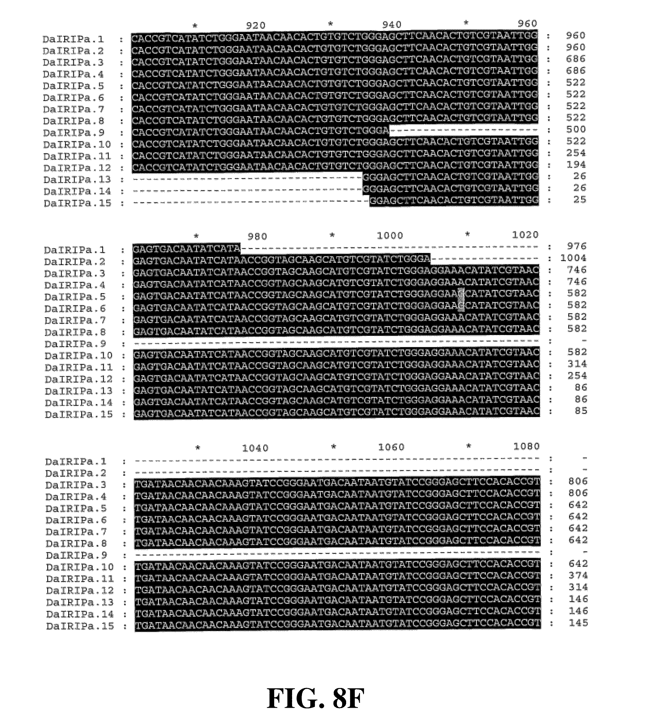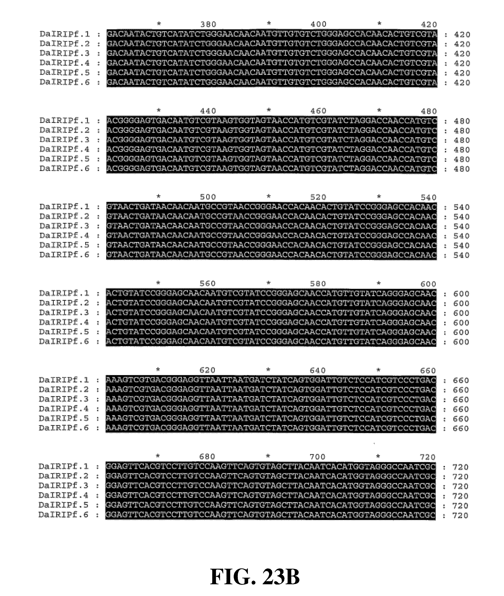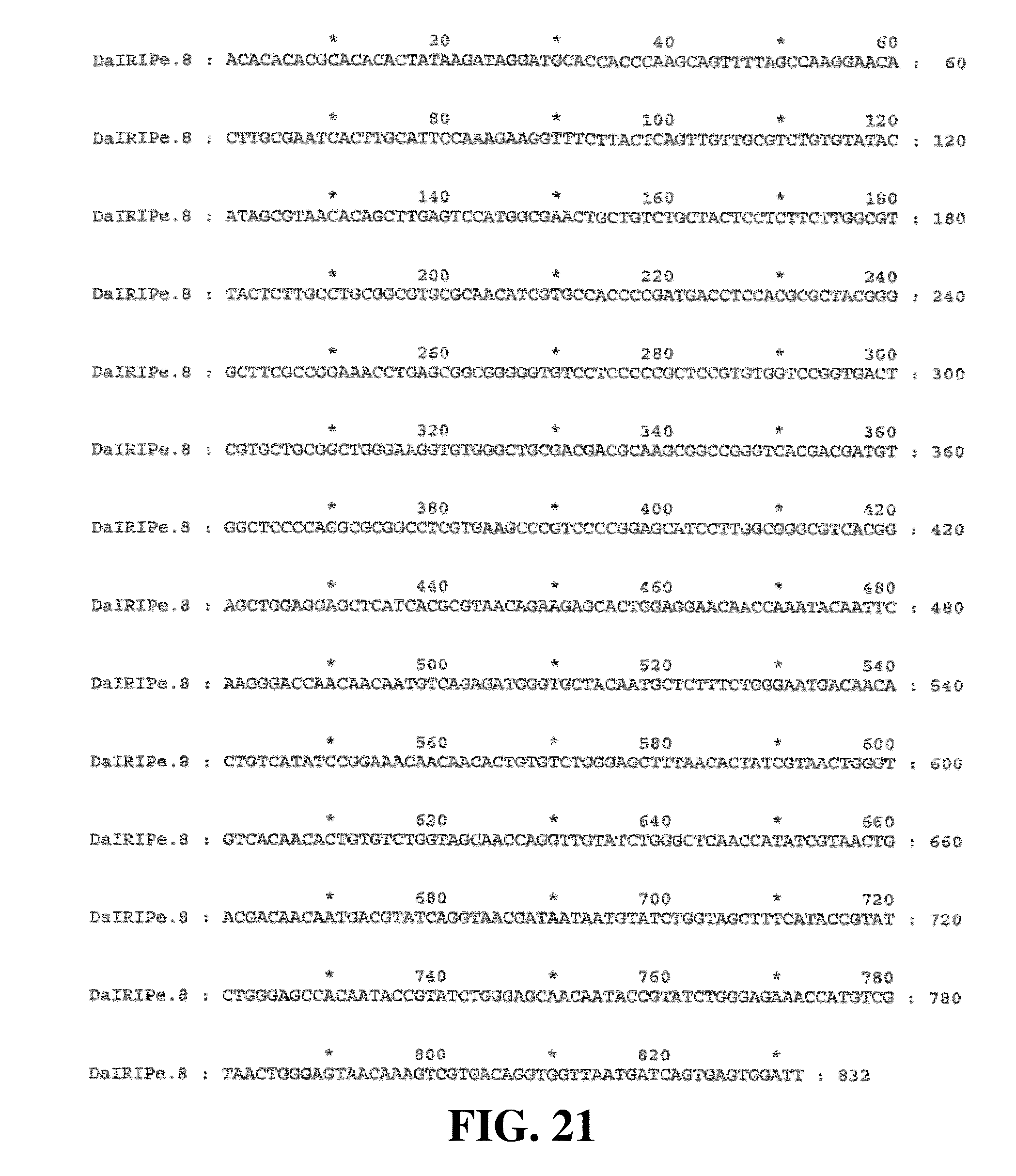 (SEQ ID NO. 130) 5′ GACATCGCGATTGGTCCCACCAAGTG 3′, and (SEQ ID NO. 131) 5′ GCATCCTGCACGGACATATCATTA 3′; and DaIRIPe: