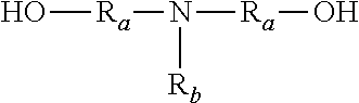 Preferably, the amines are chosen from compounds corresponding to one or more of the formulae: in which: