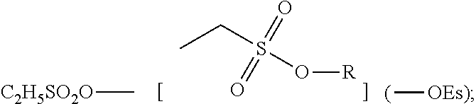 The salt version of the primary amine renders the molecule more amphiphilic with a polar head for cationic surfactants. For the derivative compounds prepared from a reaction with a mono-ether of FDM, the resultant sulfate product can be for example: