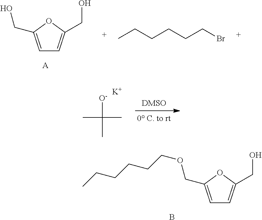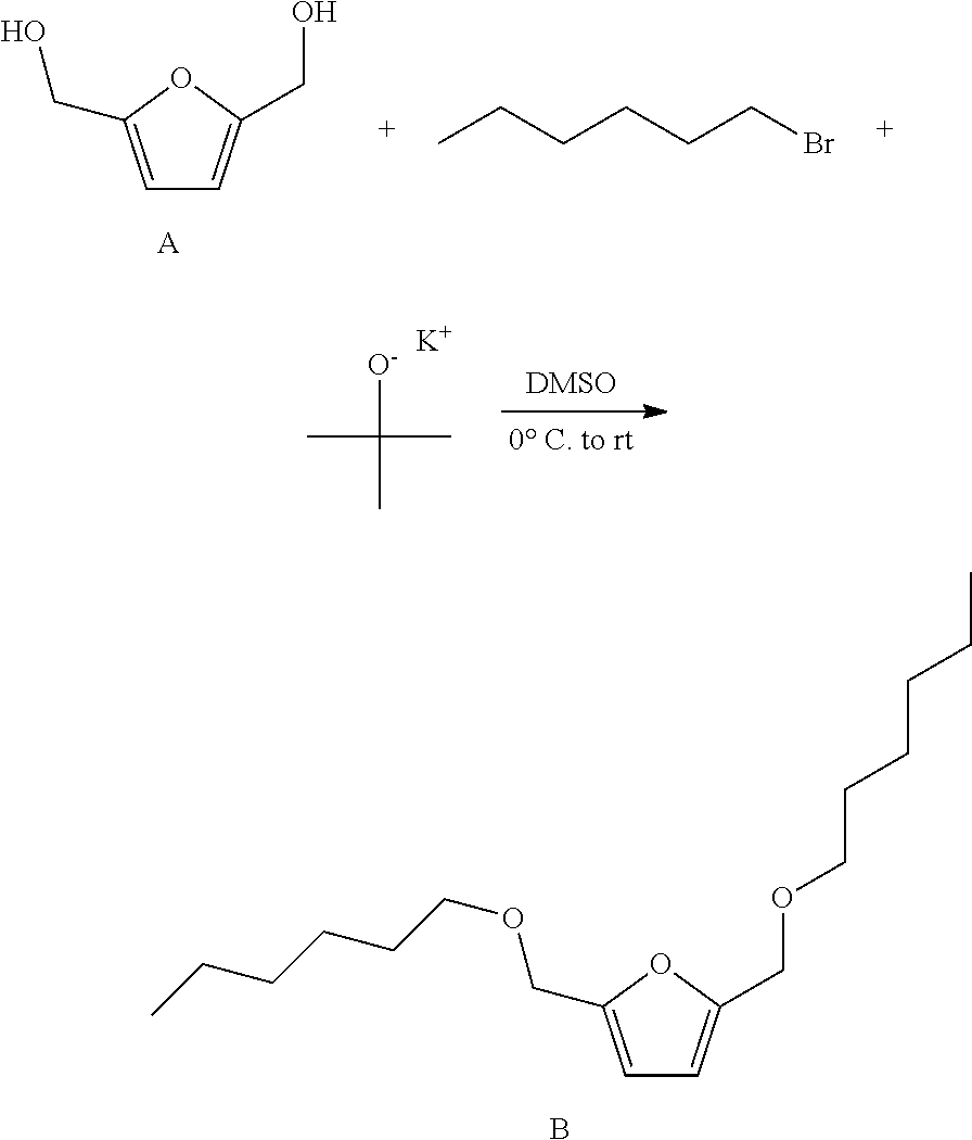 Synthesis of 2,5-bis((hexyloxy)methyl)furan, B