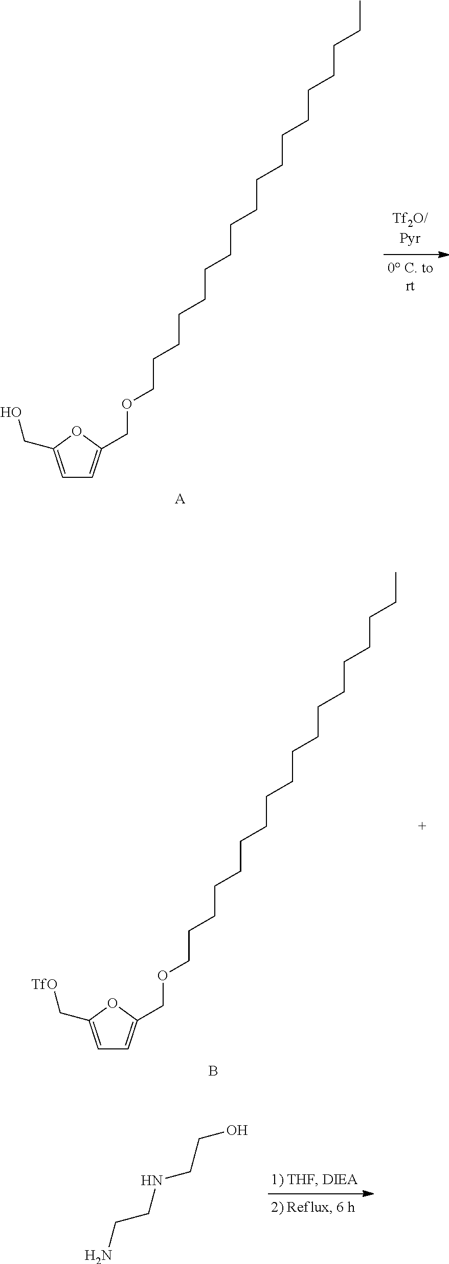 b. (5-((octadecyloxy)methyl)furan-2-yl)methyl trifluoromethanesulfonate 41. The process according to 42. A aminoethylethanolamine, wherein said the aminoethylethanolamine is the following: