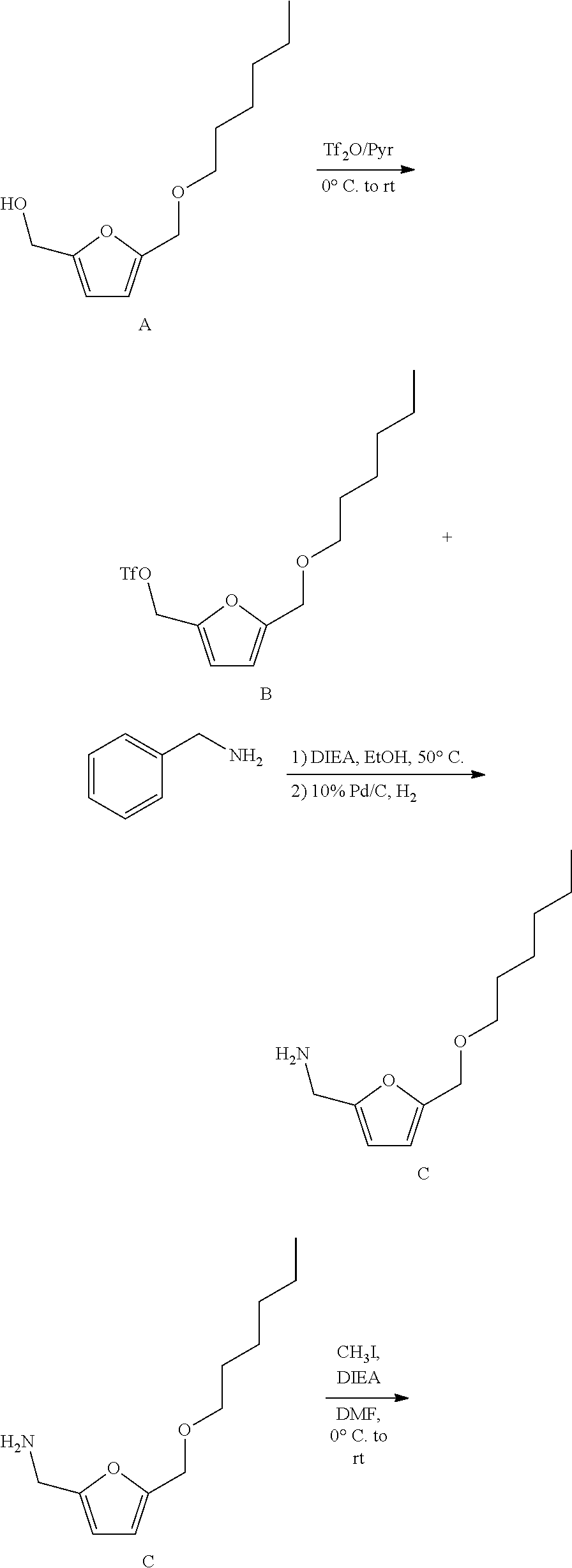(5-((hexyloxy)methyl)furan-2-yl)methanamine 44. A quaternary trimethylammonium salt, wherein said quaternary trimethyl-ammonium salt is the following: