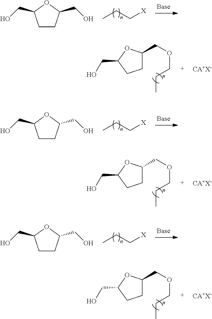 In yet a further embodiment, the present disclosure provides a method of preparing a mono-ether involving: contacting bHMTHFs with a Brønsted base and 1 or less molar equivalents of an alkyl-X species according to the following: wherein: “X” is the nucleofuge, “n” is an integer from 5 to 25, and “CA” is a conjugate acid. The resultant mono-ether of bHMTHF can be, for example, at least one of the following compounds: