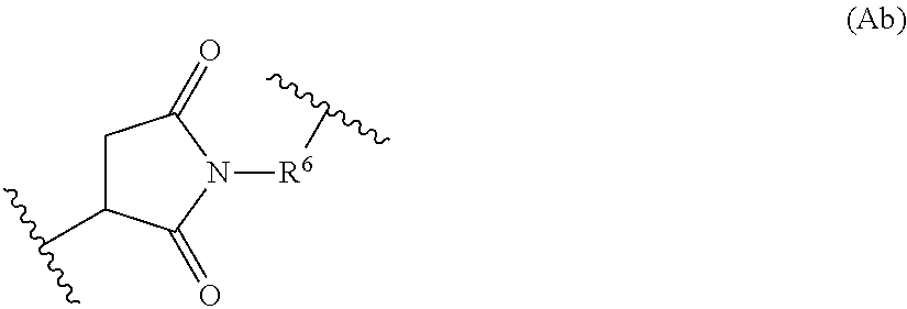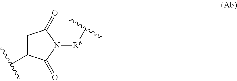 wherein R7is selected from C1-C10alkylene, C1-C10alkenyl, (C1-C10alkylene)O—, N(Rc)—(C2-C6alkylene)-N(Rc) and N(Rc)—(C2-C6alkylene); where each Rcis independently H or C1-C6alkyl; and