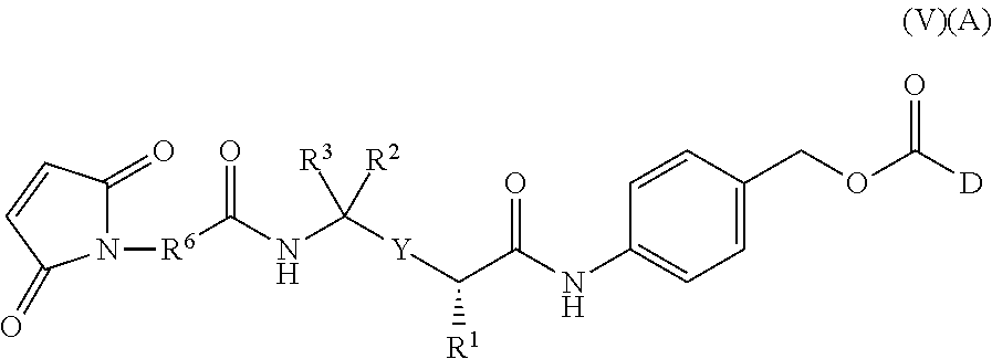 11. The antibody-drug conjugate compound of claim 4, wherein Y is heteroaryl, aryl or alkenyl; and R6is C1-C10alkylene.