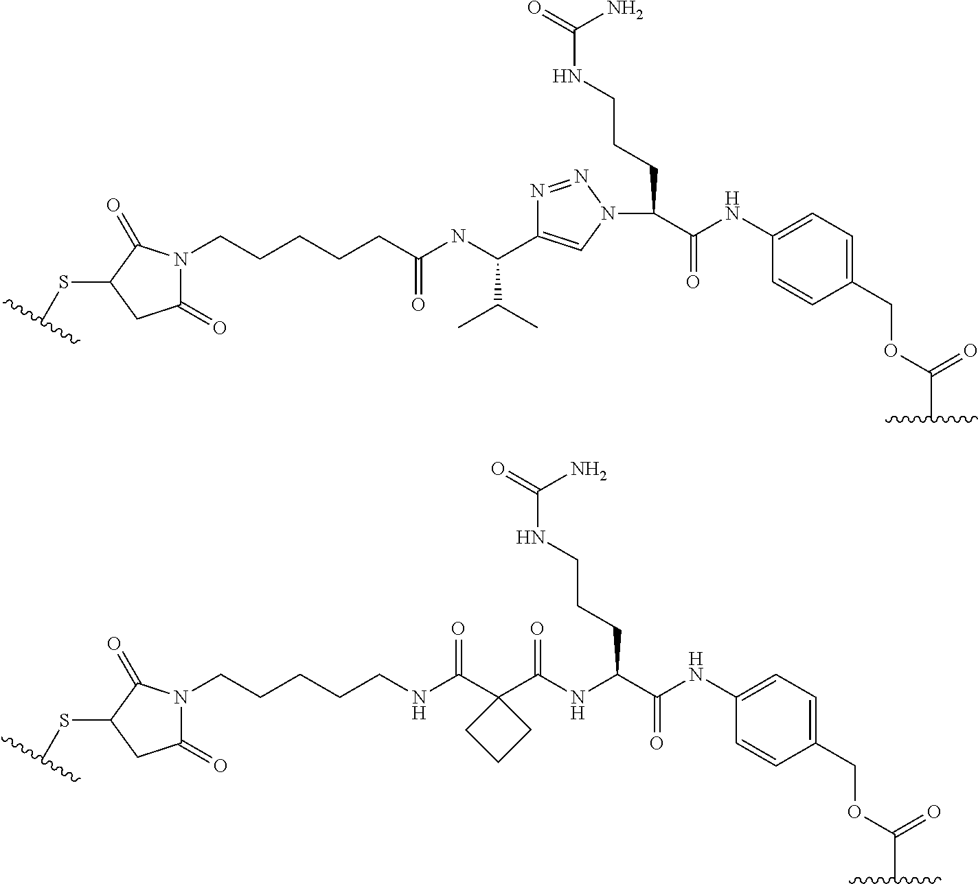 the wavy line indicates the covalent attachment site to the linker;