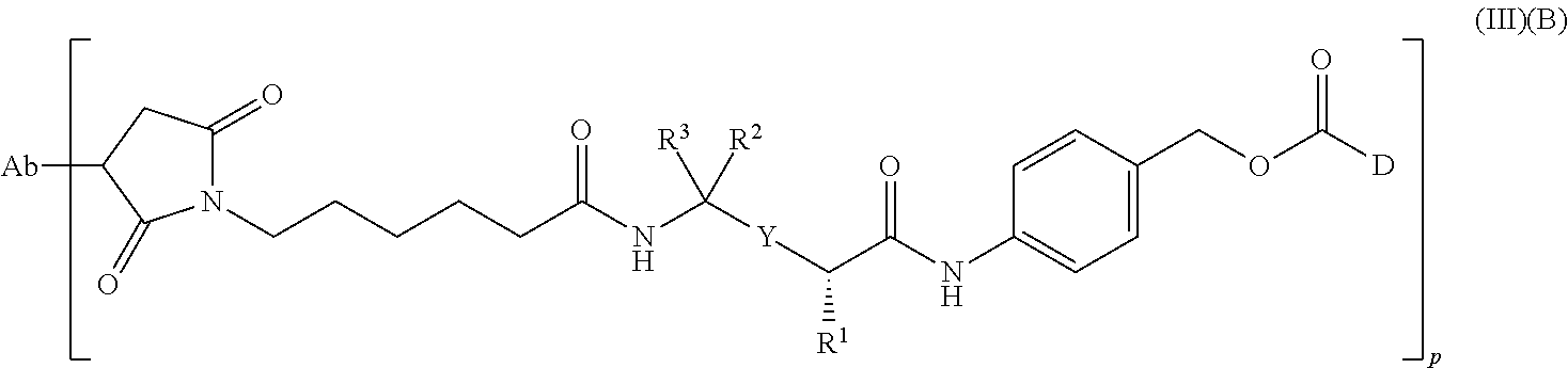 3. The antibody-drug conjugate of claim 1, wherein Y is a moiety selected from the group consisting of
