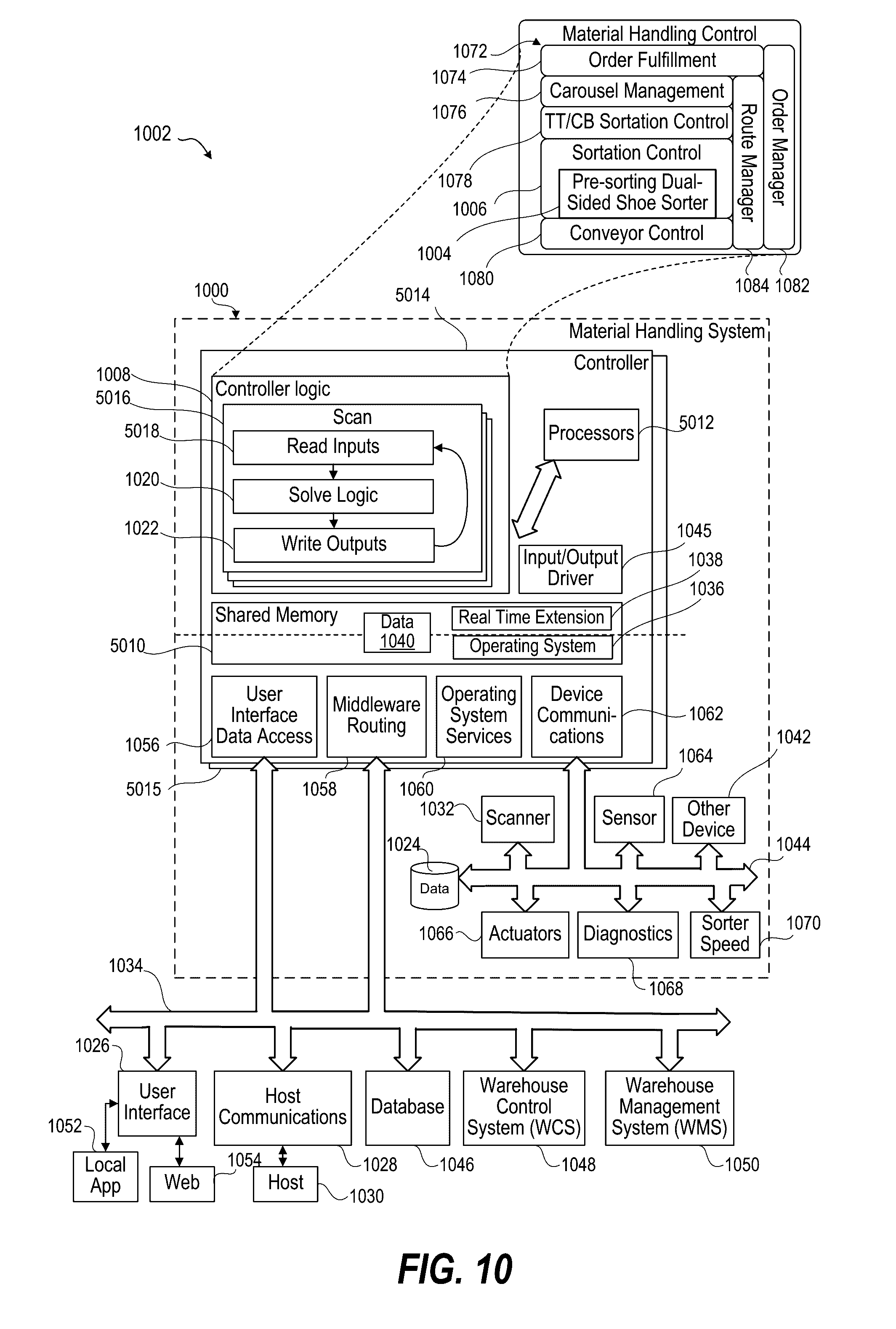 a network interface that communicates with a warehouse management system; a memory containing parameters identifying divert targets of a dual-sided sortation conveyor; a device interface in electrical communication with the dual-sided sortation conveyor; and a processor subsystem in communication with the network interface, the memory, and the device interface, the processor subsystem: