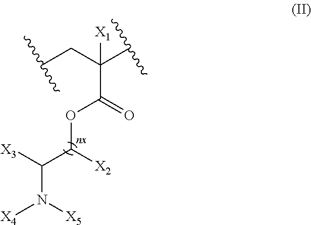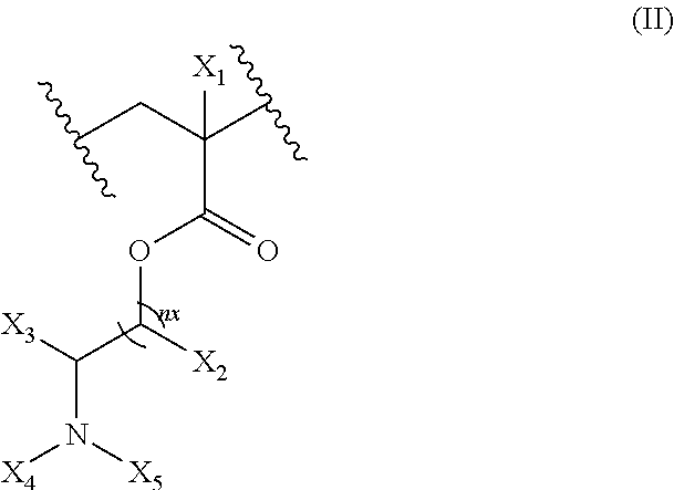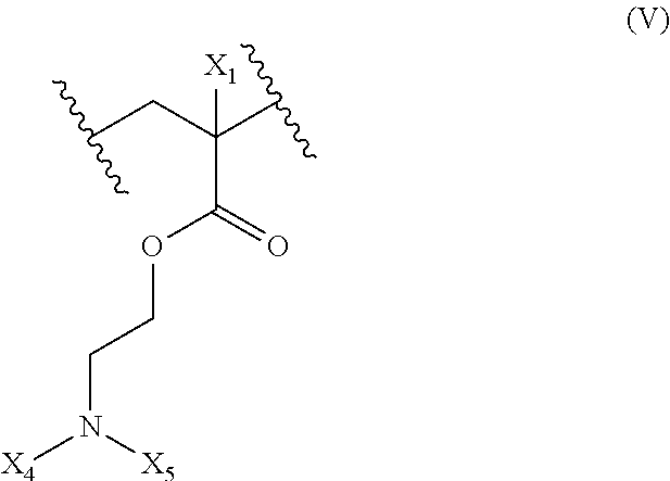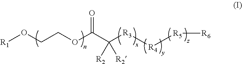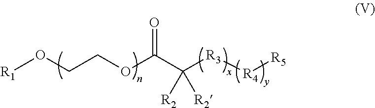 nxis 1-10; X1, X2, and X3are each independently selected from hydrogen, alkyl(C≦12), cycloalkyl(C≦12), substituted alkyl(C≦12), or substituted cycloalkyl(C≦12); X4is pentyl, n-propyl, or ethyl and X5is pentyl or n-propyl; or X4and X5are taken together and are alkanediyl(C≦12)or substituted alkanediyl(C≦12); x is an integer from 1 to 150; R4is a group of the formula: wherein: