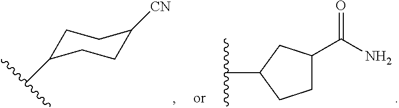 ” means a single bond where the geometry around a double bond (e.g., either E or Z) is undefined. Both options, as well as combinations thereof are therefore intended. Any undefined valency on an atom of a structure shown in this application implicitly represents a hydrogen atom bonded to that atom. A bold dot on a carbon atom indicates that the hydrogen attached to that carbon is oriented out of the plane of the paper.