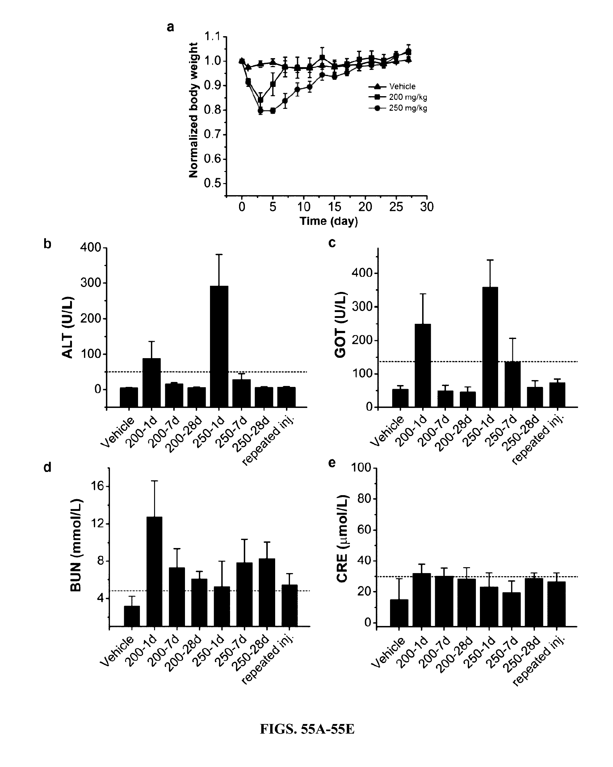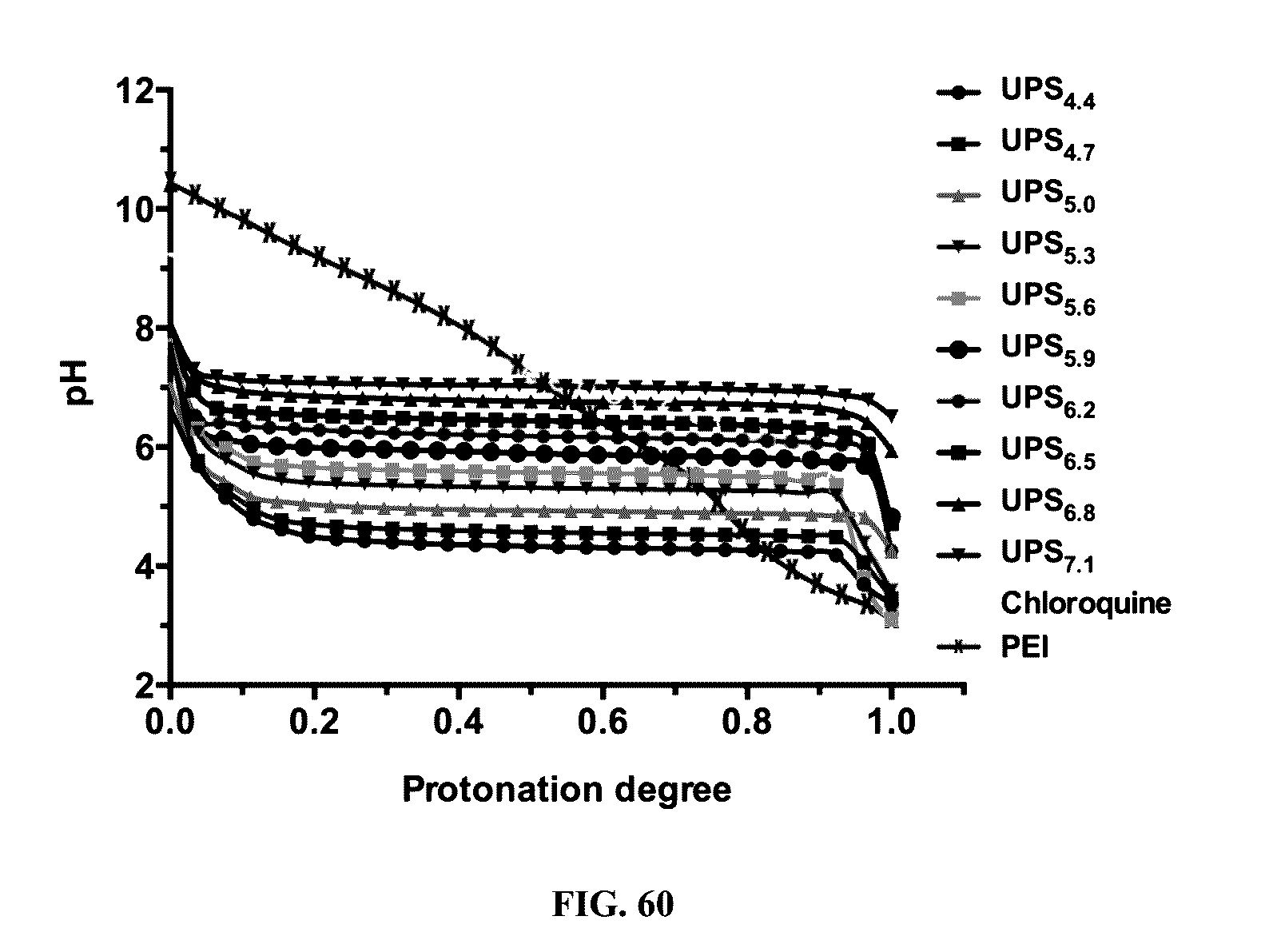 Chemical compositions and physical properties of UPS nanoparticles. Compositiona Dh(nm)b PDIb ξ (mV)c pKad pHte UPS4.4 P(D5A80) 47.5 ± 3.0 0.13 ± 0.01 −1.1 ± 0.2 4.35 4.39 UPS4.7 P(DBA28-D5A52) 62.4 ± 2.9 0.08 ± 0.01 −0.5 ± 0.1 4.65 4.71 UPS5.0 P(DBA56-D5A24) 54.6 ± 1.2 0.10 ± 0.01 −1.3 ± 0.4 4.93 5.02 UPS5.3 P(DBA80) 42.3 ± 2.6 0.12 ± 0.02 −0.7 ± 0.1 5.31 5.32 UPS5.6 P(DPA30-DBA50) 49.8 ± 2.6 0.11 ± 0.01 −2.1 ± 0.4 5.58 5.61 UPS5.9 P(DPA60-DBA20) 49.2 ± 1.3 0.11 ± 0.01 −0.9 ± 0.1 5.89 5.91 UPS6.2 P(DPA80) 44.3 ± 1.2 0.10 ± 0.01 −1.6 ± 1.8 6.19 6.22 UPS6.5 P(DEA21-DPA79) 42.0 ± 1.3 0.12 ± 0.02 −0.9 ± 0.6 6.45 6.50 UPS6.8 P(DEA39-DPA61) 35.2 ± 1.3 0.11 ± 0.01 −1.4 ± 0.6 6.77 6.79 UPS7.1 P(DEA58-DPA42) 32.7 ± 1.3 0.13 ± 0.01 −0.9 ± 1.1 7.05 7.08 aOnly the composition of the PR segment is shown. The subscripts indicate the number of repeating unit for each monomer. bThe hydrodynamic diameter (Dh) and polydispersity index (PDI) were analyzed by dynamic light scattering analysis. cSurface electrostatic potential (ξ) of the UPS nanoparticles was analyzed by the Zeta Sizer. dThe apparent pKavalues for UPS nanoparticles were measured by pH titration experiments in the presence of 150 mM NaCl. eThe transition pH (pHt) was measured from Cy5-conjugated UPS nanoprobes based on fluorescence intensity. Quantification of acidification rates of endocytic organelles by the UPS nanoparticles. [UPS]med Dh/ξ No. UPS/cell Plateau pH tp Proton rate (μg/mL) (nm/mV)a (×102)b (mean ± SD) (min)c (×102/sec)d UPS6.2 100 42.3 ± 2.6/ 4.7 n.d. n.d. N/A 400 −0.7 ± 0.1 17 6.2 ± 0.1 51 1.8 1,000 24 6.2 ± 0.1 84 1.5 UPS5.3 100 44.3 ± 1.2/ 4.6 n.d. n.d. N/A 400 −1.6 ± 1.8 17 5.4 ± 0.1 43 2.1 1,000 24 5.3 ± 0.1 68 1.9 aHydrodynamic diameter (Dh) and zeta potential (ξ) were measured in the PBS buffer at pH 7.4. bCalculated based on 800 copolymer chains per micelle. ctpis measured as the time interval where the pH was buffered at the plateau value. dThe rate of proton pumping into each endocytic organelle. Example 8: Dual Imaging Methods with PET and Fluorescence Imaging