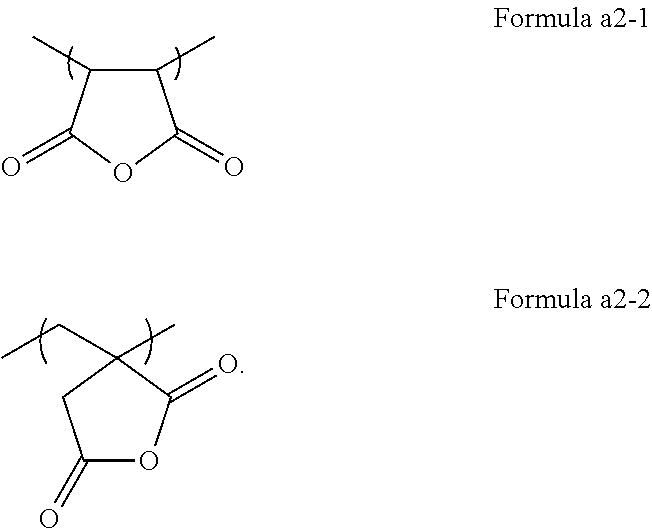 <7> In the photosensitive composition according to any one of items <1> to <6>, the constitutional unit a2 is a constitutional unit containing a five-member cyclic carboxylic acid anhydride structure.