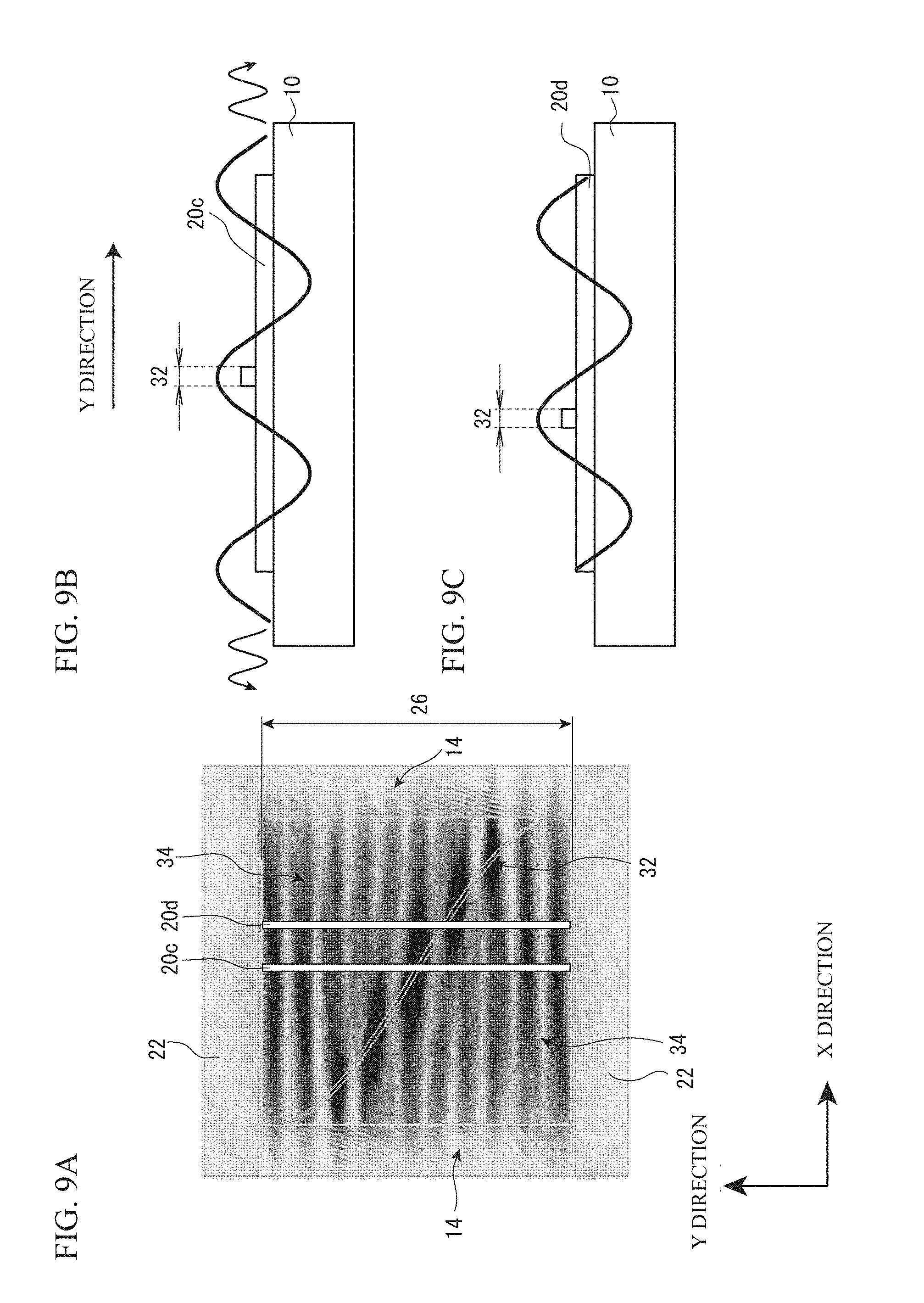 a first region that is located in the overlap region, in which a velocity of the acoustic wave is a first velocity, and of which a position in a first direction in which the plurality of electrode fingers extend changes with respect to a second direction intersecting the first direction; and second regions that are located in the overlap region, in which a velocity of the acoustic wave is a second velocity different from the first velocity, and that sandwich the first region in the first direction. 14. A duplexer comprising: