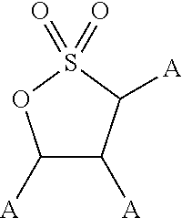 c) a sultone, saturated or unsaturated, which is optionally substituted with one or more halogen, aryl, or linear, branched, or cyclic, saturated or unsaturated alkyl groups; and