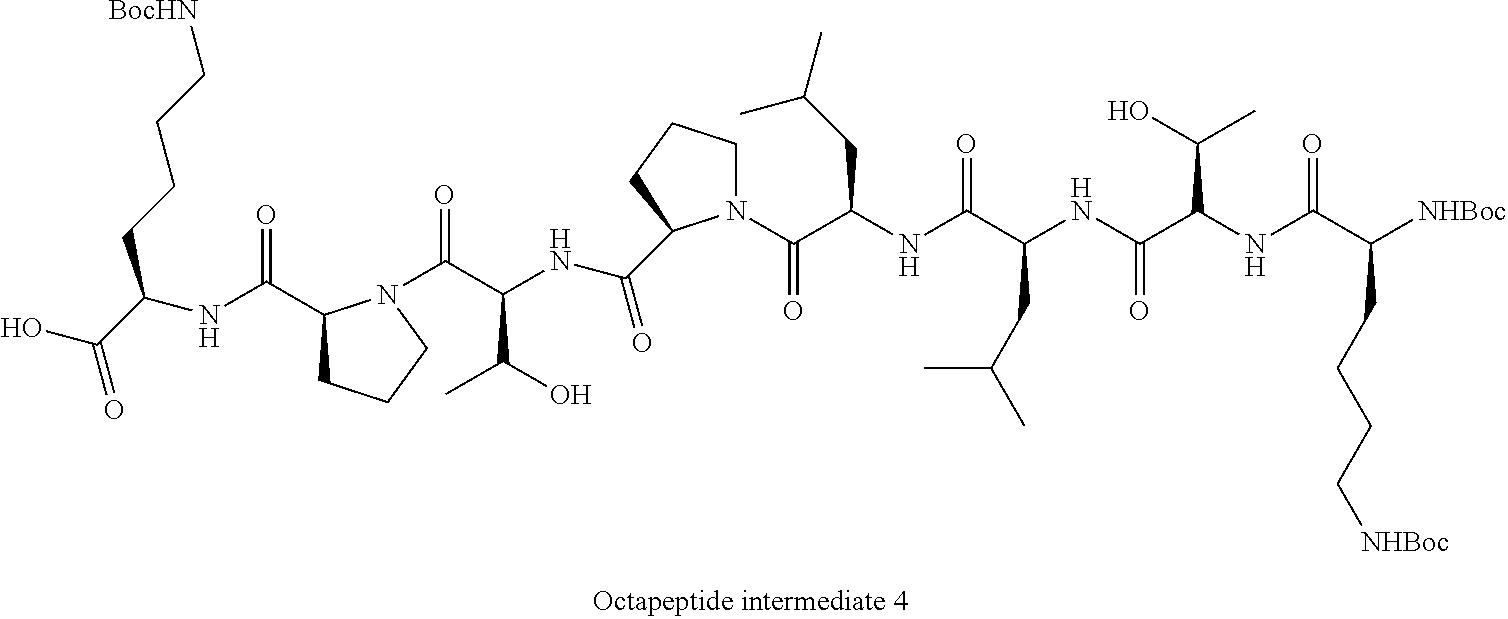 followed by treatment with TFA:DCM (5:95 v/v) for 2 h at 0° C. to obtain a protected octapeptide intermediate 4;