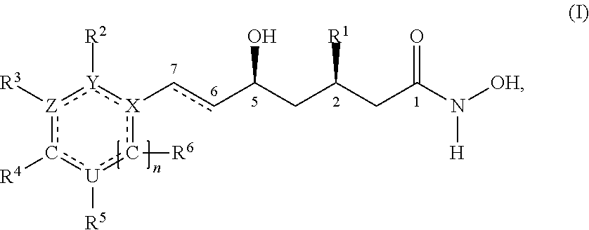 27. The method of claim 21, wherein the compound of formula (I) is (3R,5R)-7-{(1S,2S,6R,8S,8aR)-hexahydro-2,6-dimethyl-8-[2-methylbutyryloxy]naphthalenyl}-3,5-dihydroxy-N-hydroxyheptanamide.