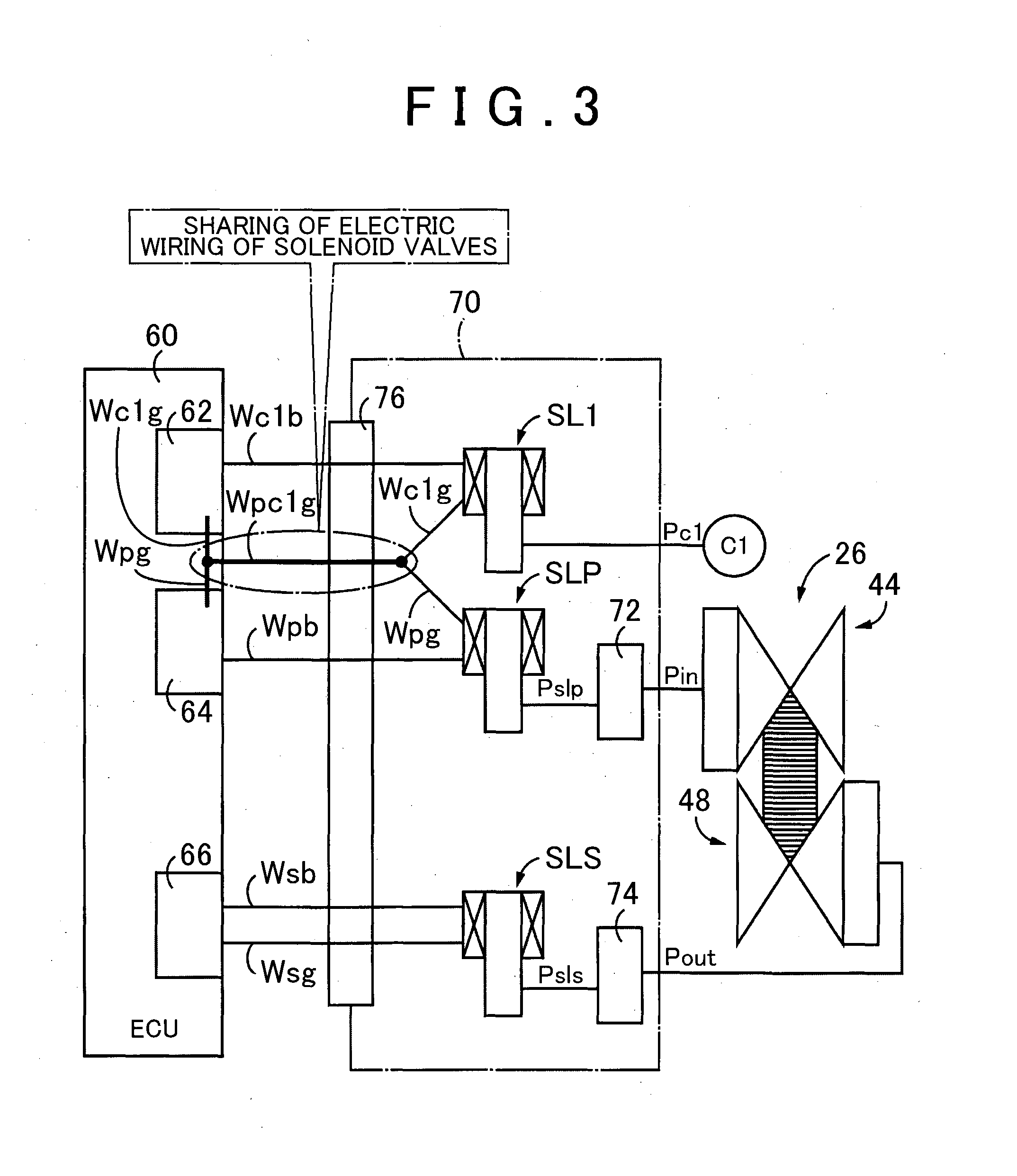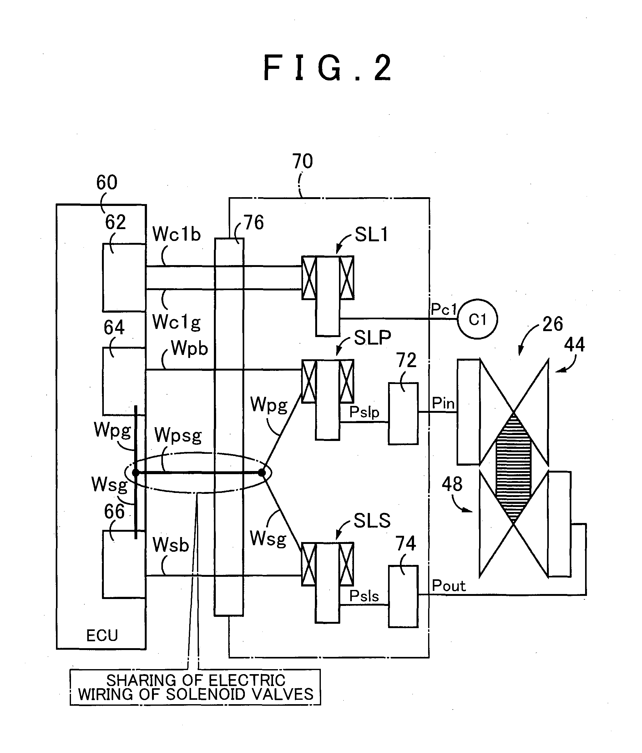Ground wires are shared between a drive-side pulley solenoid valve and a driven-side pulley solenoid valve. Therefore, when a disconnection or short circuit occurs in the shared portion, a drive-side pulley and a driven-side pulley show substantially the same behavior. As a result, changes in the speed ratio γcvt of a continuously variable transmission are suppressed and changes in vehicle behavior are also suppressed. Therefore, it is possible to suppress the degradation of drivability during the failure of the solenoid valves involved in power transmission.
