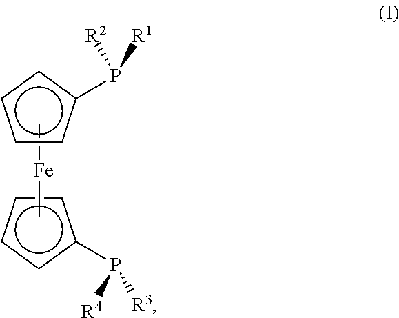 The expression (C1-C12)-alkyl encompasses straight-chain and branched alkyl groups having 1 to 12 carbon atoms. These are preferably (C1-C8)-alkyl groups, more preferably (C1-C6)-alkyl, most preferably (C1-C4)-alkyl. Suitable (C1-C12)-alkyl groups are especially methyl, ethyl, propyl, isopropyl, n-butyl, iso-butyl, sec-butyl, tert-butyl, n-pentyl, 2-pentyl, 2-methylbutyl, 3-methylbutyl, 1,2-dimethylpropyl, 1,1-dimethylpropyl, 2,2-dimethylpropyl, 1-ethylpropyl, n-hexyl, 2-hexyl, 2-methylpentyl, 3-methylpentyl, 4-methylpentyl, 1,1-dimethylbutyl, 1,2-dimethylbutyl, 2,2-dimethylbutyl, 1,3-dimethylbutyl, 2,3-dimethylbutyl, 3,3-dimethylbutyl, 1,1,2-trimethylpropyl, 1,2,2-trimethylpropyl, 1-ethylbutyl, 1-ethyl-2-methylpropyl, n-heptyl, 2-heptyl, 3-heptyl, 2-ethylpentyl, 1-propylbutyl, n-octyl, 2-ethylhexyl, 2-propylheptyl, nonyl, decyl. The elucidations relating to the expression (C1-C12)-alkyl also apply particularly to the alkyl groups in —O—(C1-C12)-alkyl, —S—(C1-C12)-alkyl, —COO—(C1-C12)-alkyl, —CONH—(C1-C12)-alkyl, —CO—(C1-C12)-alkyl and —N—[(C1-C12)-alkyl]2. The expression (C3-C12)-cycloalkyl encompasses mono-, bi- or tricyclic hydrocarbyl groups having 3 to 12 carbon atoms. Preferably, these groups are (C5-C12)-cycloalkyl. The (C3-C12)-cycloalkyl groups have preferably 3 to 8, more preferably 5 or 6, ring atoms. Suitable (C3-C12)-cycloalkyl groups are especially cyclopropyl, cyclobutyl, cyclopentyl, cyclohexyl, cycloheptyl, cyclooctyl, cyclododecyl, cyclopentadecyl, norbomyl, adamantyl. The elucidations relating to the expression (C3-C12)-cycloalkyl also apply particularly to the cycloalkyl groups in —O—(C3-C12)-cycloalkyl, —S—(C3-C12)-cycloalkyl, —COO—(C3-C12)-cycloalkyl, —CONH—(C3-C12)-cycloalkyl, —CO—(C3-C12)-cycloalkyl. The expression (C3-C12)-heterocycloalkyl encompasses nonaromatic, saturated or partly unsaturated cycloaliphatic groups having 3 to 12 carbon atoms, where one or more of the ring carbon atoms are replaced by heteroatoms. The (C3-C12)-heterocycloalkyl groups have preferably 3 to 8, more preferably 5 or 6, ring atoms and are optionally substituted by aliphatic side chains. In the heterocycloalkyl groups, as opposed to the cycloalkyl groups, one or more of the ring carbon atoms are replaced by heteroatoms or heteroatom-containing groups. The heteroatoms or the heteroatom-containing groups are preferably selected from O, S, N, N(═O), C(═O), S(═O). A (C3-C12)-heterocycloalkyl group in the context of this invention is thus also ethylene oxide. Suitable (C3-C12)-heterocycloalkyl groups are especially tetrahydrothiophenyl, tetrahydrofuryl, tetrahydropyranyl and dioxanyl. The expression (C6-C20)-aryl encompasses mono- or polycyclic aromatic hydrocarbyl radicals having 6 to 20 carbon atoms. These are preferably (C6-C14)-aryl, more preferably (C6-C10)-aryl. Suitable (C6-C20)-aryl groups are especially phenyl, naphthyl, indenyl, fluorenyl, anthracenyl, phenanthrenyl, naphthacenyl, chrysenyl, pyrenyl, coronenyl. Preferred (C6-C20)-aryl groups are phenyl, naphthyl and anthracenyl. The expression (C3-C20)-heteroaryl encompasses mono- or polycyclic aromatic hydrocarbyl radicals having 3 to 20 carbon atoms, where one or more of the carbon atoms are replaced by heteroatoms. Preferred heteroatoms are N, O and S. The (C3-C20)-heteroaryl groups have 3 to 20, preferably 6 to 14 and more preferably 6 to 10 ring atoms. Thus, for example, pyridyl in the context of this invention is a C6-heteroaryl radical; furyl is a C5-heteroaryl radical. Suitable (C3-C20)-heteroaryl groups are especially furyl, thienyl, pyrrolyl, oxazolyl, isoxazolyl, thiazolyl, isothiazolyl, imidazolyl, pyrazolyl, furazanyl, tetrazolyl, pyridyl, pyridazinyl, pyrimidyl, pyrazinyl, benzofuranyl, indolyl, isoindolyl, benzimidazolyl, quinolyl, isoquinolyl. The expression halogen especially encompasses fluorine, chlorine, bromine and iodine. Particular preference is given to fluorine and chlorine. In one embodiment, the R1, R3 radicals may each independently be substituted by one or more substituents selected from —(C1-C12)-alkyl, —(C3-C12)-cycloalkyl, —(C3-C12)-heterocycloalkyl, —O—(C1-C12)-alkyl, —O—(C1-C12)-alkyl-(C6-C20)-aryl, —O—(C3-C12)-cycloalkyl, —S—(C1-C12)-alkyl, —S—(C3-C12)-cycloalkyl, —(C6-C20)-aryl, —(C6-C20)-aryl-(C1-C12)-alkyl, —(C6-C20)-aryl-O—(C1-C12)-alkyl, —(C3-C20)-heteroaryl, —(C3-C20)-heteroaryl-(C1-C12)-alkyl, —(C3-C20)-heteroaryl-O—(C1-C12)-alkyl, —COOH, —OH, —SO3H, —NH2, halogen. In one embodiment, the R1, R3 radicals may each independently be substituted by one or more substituents selected from —(C1-C12)-alkyl, —(C3-C12)-cycloalkyl, —O—(C1-C12)-alkyl, —O—(C1-C12)-alkyl-(C6-C20)-aryl, —O—(C3-C12)-cycloalkyl, —(C6-C20)-aryl, —(C6-C20)-aryl-(C1-C12)-alkyl, —(C6-C20)-aryl-O—(C1-C12)-alkyl, —(C3-C20)-heteroaryl, —(C3-C20)-heteroaryl-(C1-C12)-alkyl, —(C3-C20)-heteroaryl-O—(C1-C12)-alkyl. In one embodiment, the R1, R3 radicals may each independently be substituted by one or more substituents selected from —(C1-C12)-alkyl, —O—(C1-C12)-alkyl-(C6-C20)-aryl, —(C3-C20)-heteroaryl, —(C3-C20)-heteroaryl-(C1-C12)-alkyl, —(C3-C20)-heteroaryl-O—(C1-C12)-alkyl. In one embodiment, the R1, R3 radicals may each independently be substituted by one or more substituents selected from —(C1-C12)-alkyl and —(C3-C20)-heteroaryl. In one embodiment, the radicals R1 and R3 are unsubstituted. In one embodiment, the radicals R2 and R4, if they are —(C1-C12)-alkyl, —(C3-C12)-cycloalkyl, —(C3-C12)-heterocycloalkyl or —(C6-C20)-aryl, may each independently be substituted by one or more substituents selected from —(C1-C12)-alkyl, —(C3-C12)-cycloalkyl, —(C3-C12)-heterocycloalkyl, —O—(C1-C12)-alkyl, —O—(C1-C12)-alkyl-(C6-C20)-aryl, —O—(C3-C12)-cycloalkyl, —S—(C1-C12)-alkyl, —S—(C3-C12)-cycloalkyl, —(C6-C20)-aryl, —(C6-C20)-aryl-(C1-C12)-alkyl, —(C6-C20)