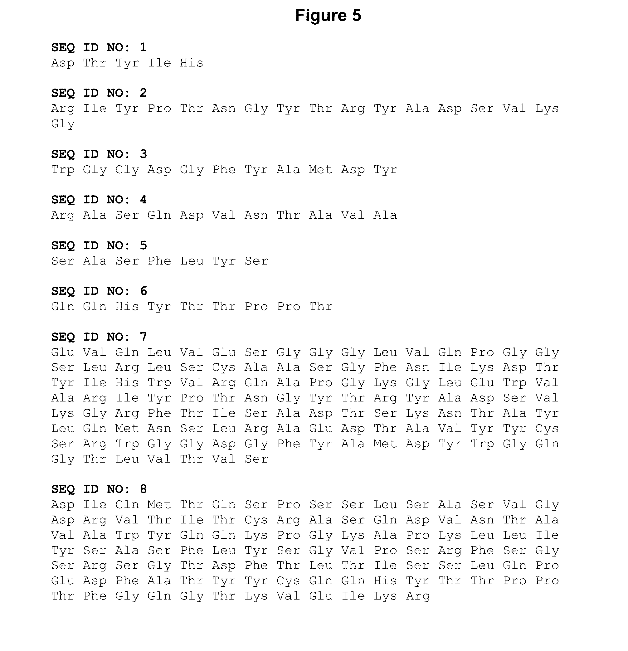 • (ii) SEQ ID NO: 48, 49, 50, 69, 70, 71, 72, 73, 74, 75, 76, 77, 78, 79, 80, 81, 82, 83, 84, 85, or 86; SEQ ID NO: 51 or 52; and SEQ ID NO: 53 or 54.