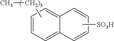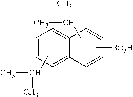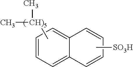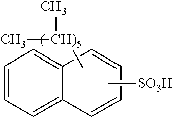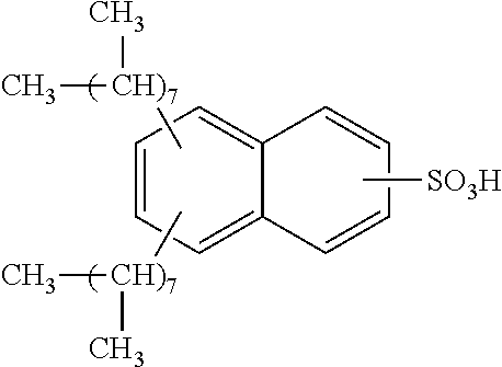 dinonylnaphthylsulfonic acid methylnaphthylsulfonic acid ethylnaphthylsulfonic acid propylnaphthylsulfonic acid butylnaphthylsulfonic acid pentylnaphthylsulfonic acid hexylnaphthylsulfonic acid heptylnaphthylsulfonic acid octylnaphthylsulfonic acid nonylnaphthylsulfonic acid decylnaphthylsulfonic acid dimethylnaphthylsulfonic acid diethylnaphthylsulfonic acid dipropylnaphthylsulfonic acid dibutylnaphthylsulfonic acid dipentylnaphthylsulfonic acid dihexylnaphthylsulfonic acid diheptylnaphthylsulfonic acid dioctylnaphthylsulfonic acid didecylnaphthylsulfonic acid
