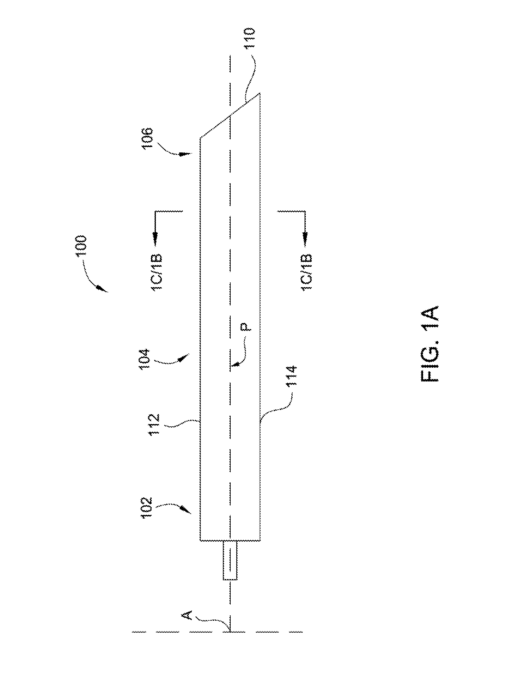 a root section comprising a first surface; an intermediate section comprising a first surface and coupled with the root section at a first end; a tip section comprising a first surface and coupled at a first end with a second end of the intermediate section; and a conductive material layer coupled to at least one of the first surface of the root section, the first surface of the intermediate section, or the first surface of the tip section, the conductive material comprising: