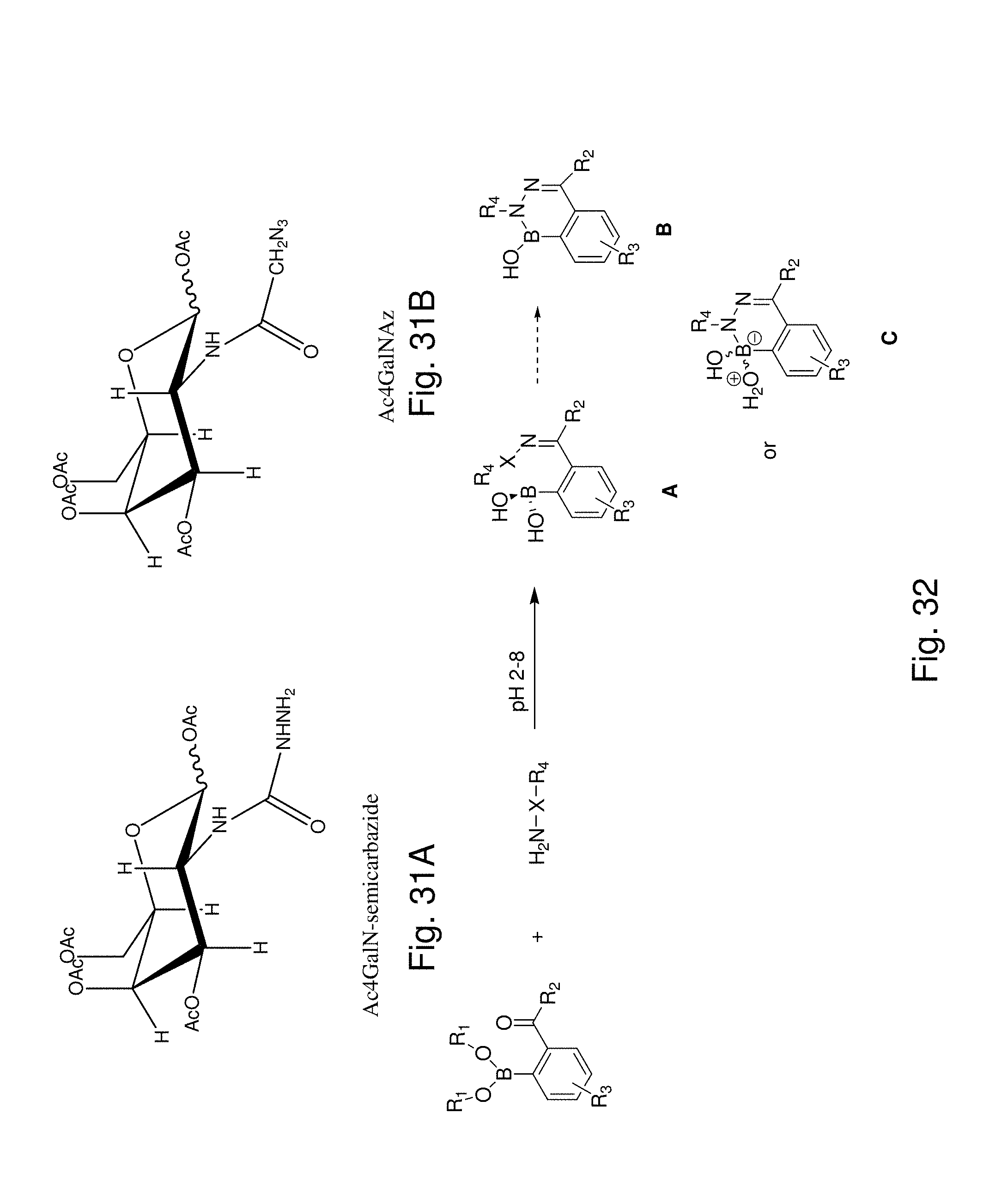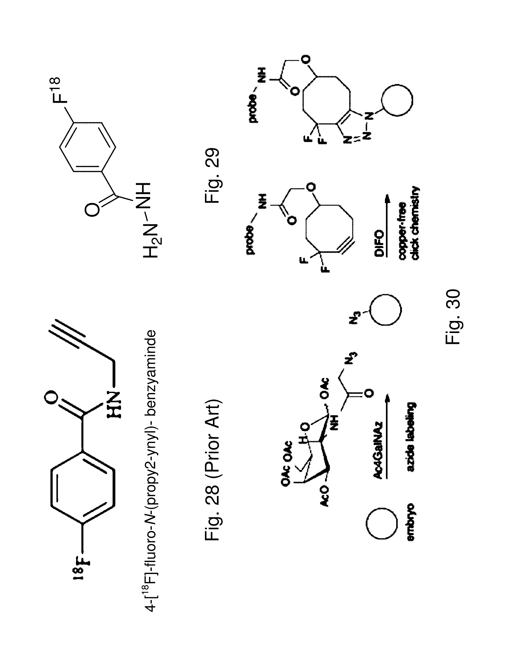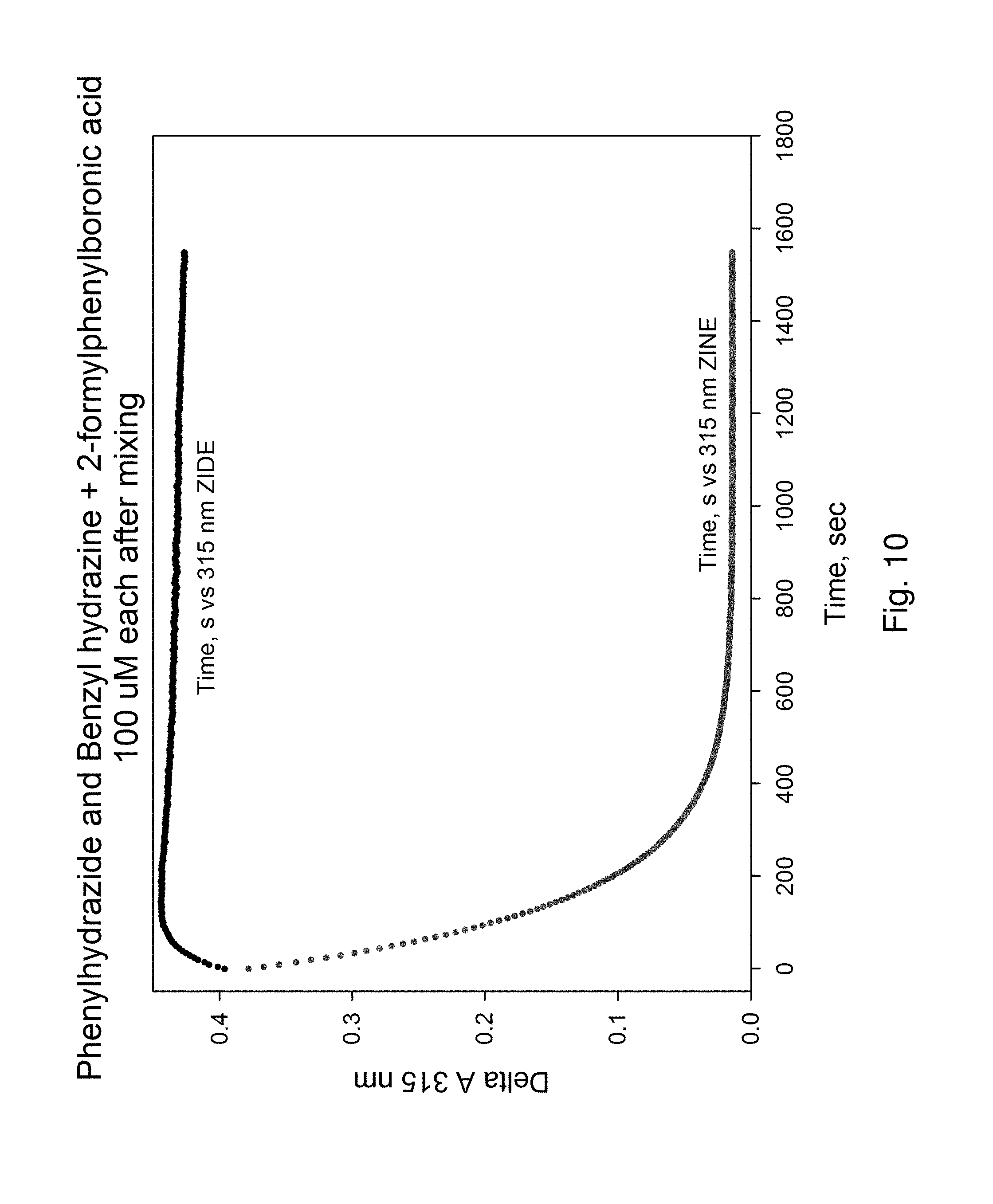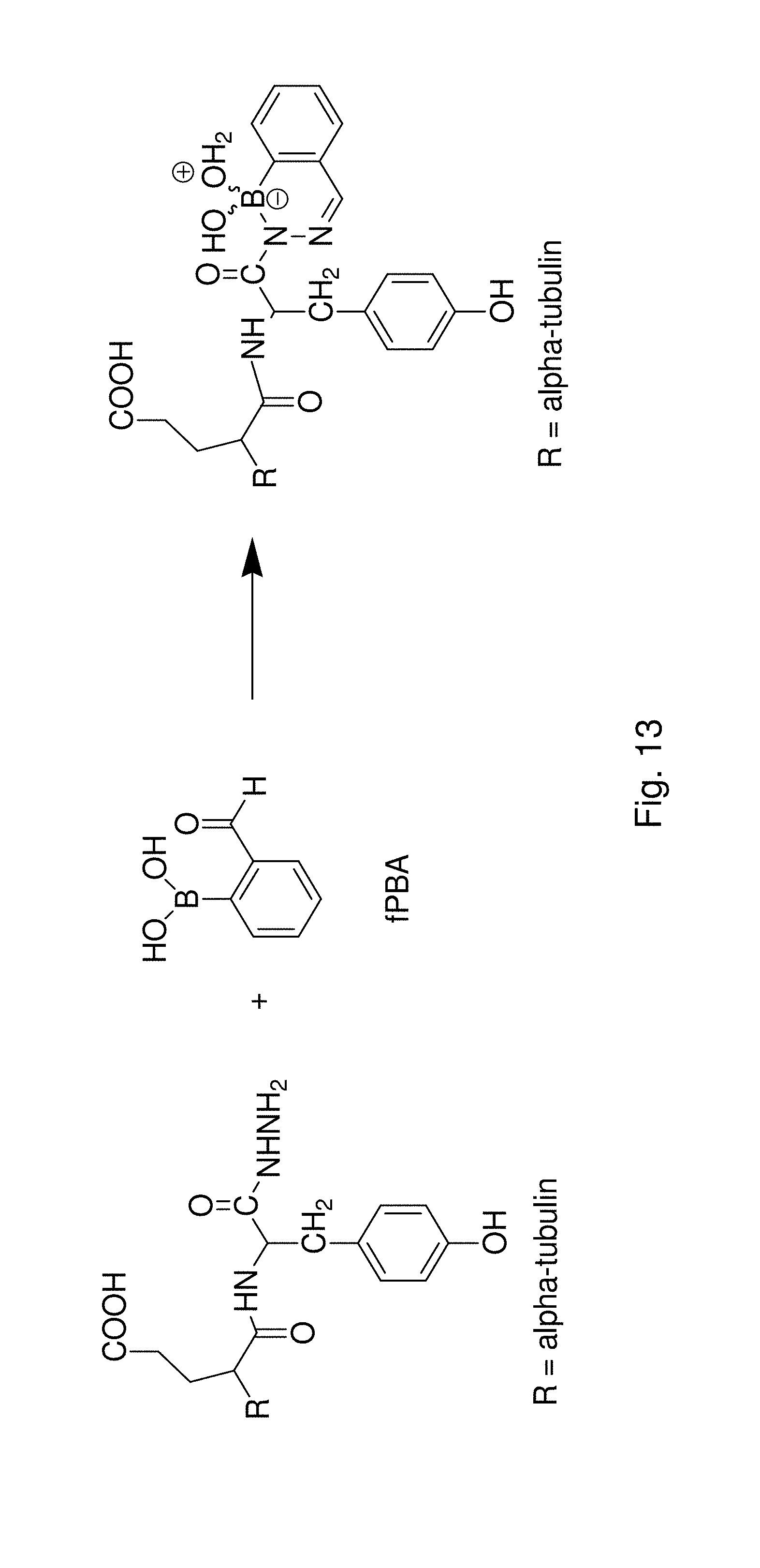 The present application is a Division of U.S. patent application Ser. No. 14/694,744, filed Apr. 23, 2015, now U.S. Pat. No. 9,758,533, issued Sep. 12, 2017, which claims benefit of priority from U.S. Provisional Patent Application No. 61/983,396, filed Apr. 23, 2014, the entirety of which are expressly incorporated herein by reference. This invention was made with government support under R15 GM-093941 awarded by NIH NIGMS. The government has certain rights in the invention. Each of the references discussed in this specification are expressly incorporated by reference in their entirety, whether or not specifically mentioned in association therewith. “Click chemistry” is a technology first developed by Sharpless at Scripps Institute, employing a copper (I) catalyzed reaction in which azide moieties are attached via a 1,3-cycloaddition with an alkyne. Copper-free click chemistry reactions are also possible. Methods of using click chemistry are known in the art and include those described by V. V. Rostovtsev, L. G. Green, V. V. Fokin and K. B. Sharpless, Angew. Chem., Int. Ed., 2002, 41, 2596-2599; Sun, Xue-Long, et al. “Carbohydrate and protein immobilization onto solid surfaces by sequential diels-alder and azide-alkyne cycloadditions.” Bioconjugate chemistry 17.1 (2006): 52-57; and Baskin, Jeremy M., et al. “Copper-free click chemistry for dynamic in vivo imaging.” Proceedings of the National Academy of Sciences 104.43 (2007): 16793-16797. Unfortunately, the mandatory copper catalyst is toxic to both bacterial and mammalian cells, thus precluding applications wherein the cells must remain viable. Catalyst-free Huisgen cycloadditions of alkynes activated by electron-withdrawing substituents have been reported to occur at ambient temperatures. However, these compounds undergo Michael reaction with biological nucleophiles. “Click Chemistry” reactions are high yielding, wide in scope, create only byproducts that can be removed without chromatography, simple to perform, and can be conducted in easily removable or benign solvents. This concept was developed in parallel with the interest within the pharmaceutical, materials, and other industries in capabilities for generating large libraries of compounds for screening in discovery research. Several types of reaction have been identified that fulfill these criteria, thermodynamically-favored reactions that lead specifically to one product, such as nucleophilic ring opening reactions of epoxides and aziridines, non-aldol type carbonyl reactions, such as formation of hydrazones and heterocycles, additions to carbon-carbon multiple bonds, such as oxidative formation of epoxides and Michael Additions, and cycloaddition reactions. The azide-alkyne cycloaddition fulfills many of the prerequisites. Many of the starting monosubstituted alkynes and organic azides are available commercially, many others can easily be synthesized with a wide range of functional groups, and their cycloaddition reaction selectively gives 1,2,3-triazoles. See Unfortunately, the thermal Huisgen 1,3-Dipolar Cycloaddition of alkynes to azides requires elevated temperatures and often produces mixtures of the two regioisomers when using asymmetric alkynes. In this respect, the classic 1,3-dipolar cycloaddition fails as a true “click” reaction. A copper-catalyzed variant that follows a different mechanism can be conducted under aqueous conditions, even at room temperature. Additionally, whereas the classic Huisgen 1,3-dipolar cycloaddition often gives mixtures of regioisomers, the copper-catalyzed reaction allows the synthesis of the 1,4-disubstituted regioisomers specifically. By contrast, a later developed ruthenium-catalyzed reaction gives the opposite regioselectivity with the formation of 1,5-disubstituted triazoles. Thus, these catalyzed reactions comply with the definition of click chemistry and have put a focus on azide-alkyne cycloaddition as a prototype click reaction. See The click chemistry reactions are reactions between two functional groups that are highly selective, easy to perform and proceed at nearly quantitative yield. A biocompatible click reaction must have these characteristics but in addition such reactions need to proceed in dilute aqueous solution at neutral pH, and preferably with rapid kinetics. A bioorthogonal click reaction possesses all the characteristics of a biocompatible reaction with the additional requirement that the reactive functional groups do not form stable covalent bonds with functionalities in the biological system. One of the first types of reaction that was used for bioorthogonal ligations is the reaction of aldehydes and ketones with heteroatom-bonded amines that are sometimes called “α-effect amines” (hydrazine, hydrazide, and other amine-nitrogen compounds, aminooxy reagents, etc.). While an amine-aldehyde/ketone reaction is highly reversible in aqueous solution, an α-effect amine-aldehyde/ketone reaction proceeds readily in mildly acidic aqueous solution to form a product (hydrazone or oxime) that is considerably more stable and less reversible than the product formed with a simple amine. The characteristics of the reaction are sharply dependent on the precise nature of α-effect amine and the carbonyl-containing reactive partner. Such reactions have been well studied. (Jencks, W. P. “Practical kinetics.” Catalysis in chemistry and enzymology. McGraw-Hill series in advanced chemistry (1969): 555-614.) The alpha effect refers to the increased nucleophilicity of a molecule due to the presence of an adjacent (alpha) atom with lone pair electrons. These include hydrazine, hydroxylamine, the hypochlorite ion and the hydroperoxide anion. (Buncel, E., and Um, I.-H. The α-effect and its modulation by solvent, A major drawback to the use of aldehyde-ketone condensation reactions with α-effect amines is that the optimal pH of the reaction is normally 2-5, which is much lower than physiological pH. (Smith, P. 