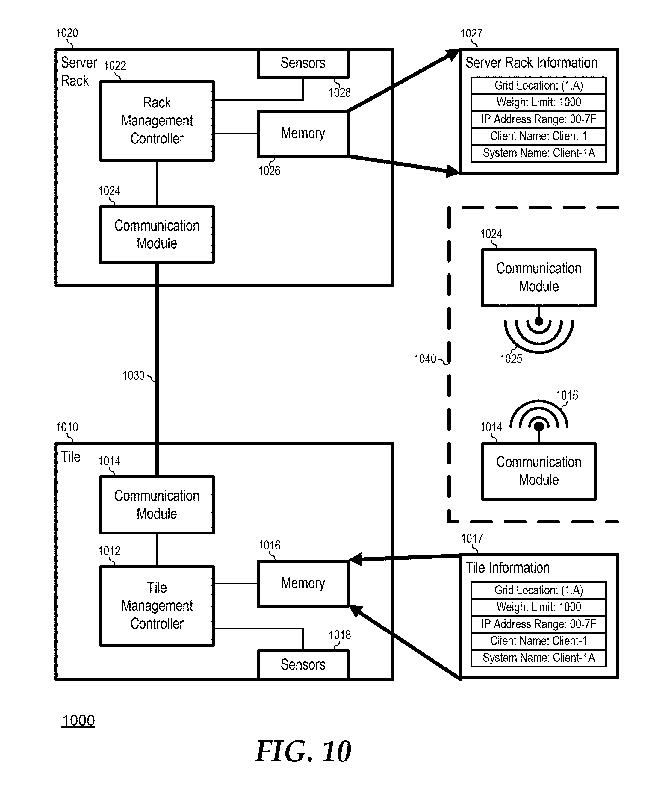 A data center including a data center management controller and a plurality of floor tiles. Each floor tile includes a tile management controller coupled to the data center management controller. The data center management controller aggregates floor tile information from each floor tile and provides floor tile configuration information to each floor tile.