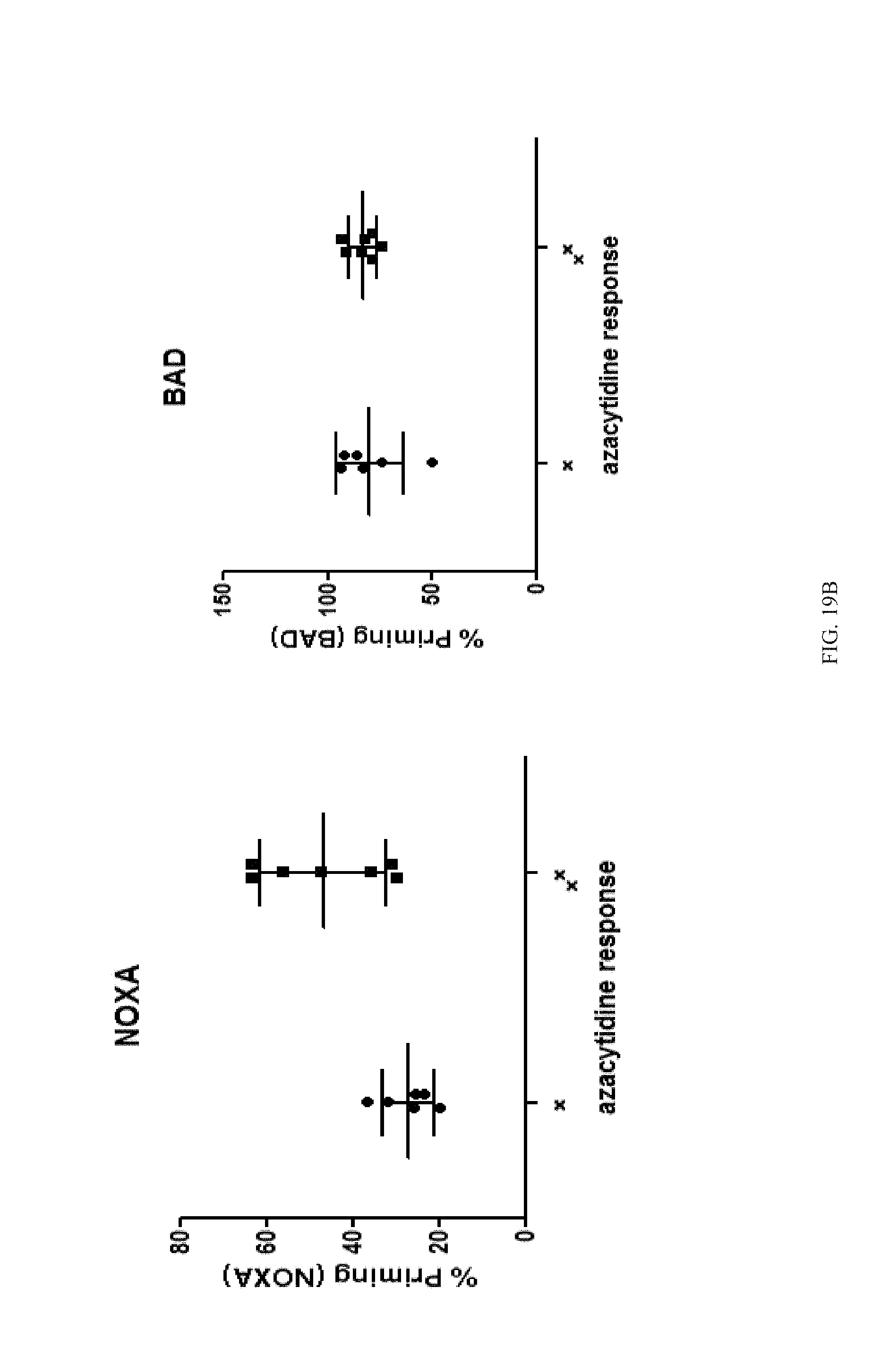 As azacytidine belongs to class of anti-cancer agents known as epigenetic modifying agents, a direct modulation of apoptosis and effect on mitochondrial biology is unlikely. Therefore, it is surprising that azacytidine therapeutic efficacy may be predicted by metrics designed to interrogate the intrinsic apoptosis pathway and mitochondrial biology. See, e.g., Vo et al. (Cell. 2012; 151(2):344-355) which reported that azacytidine efficacy was not predicted by BH3-derived metrics.