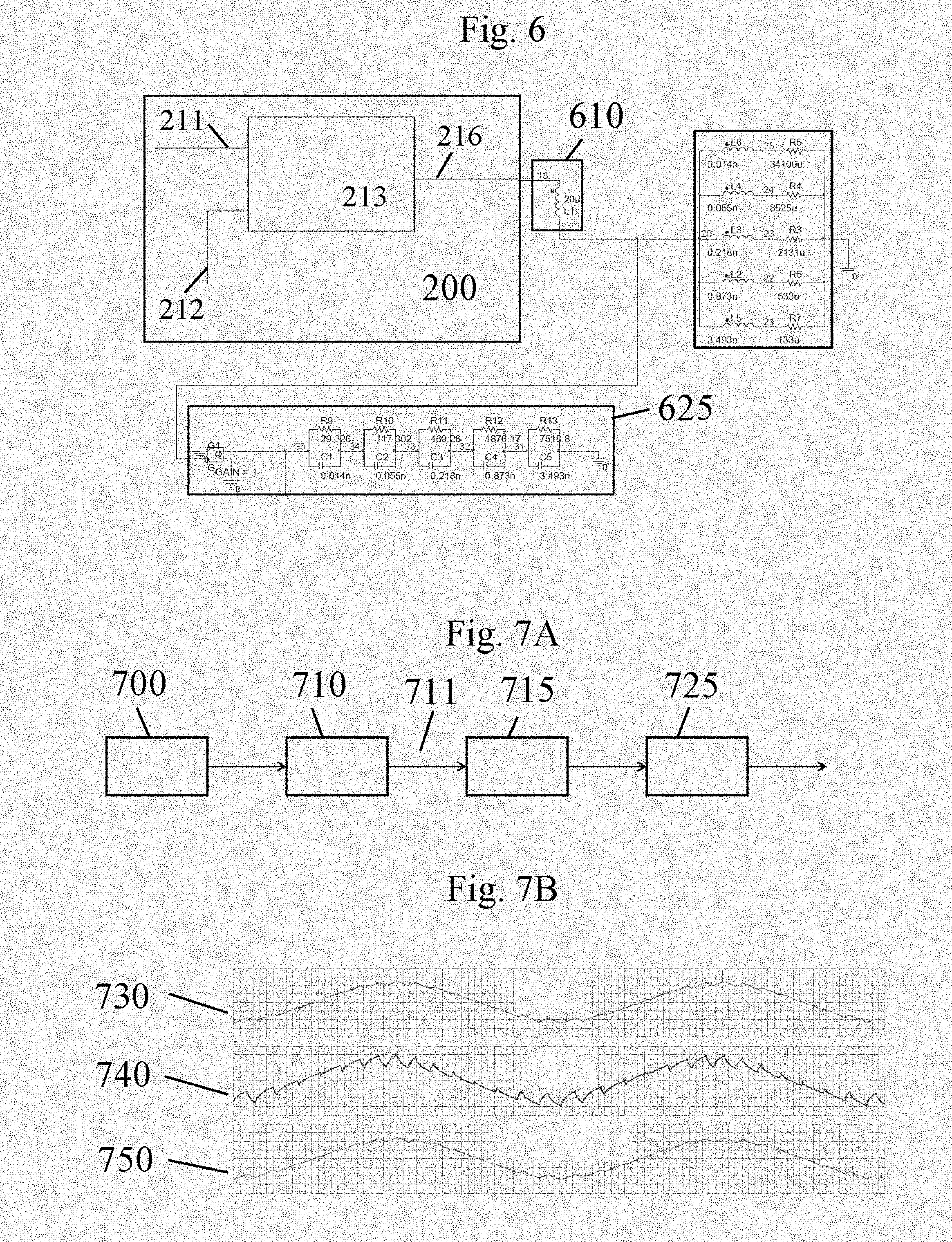To demonstrate distortion of a waveform by the skin effect and correction of the distorted waveform by the method and apparatus according to the invention, a pulse-width modulation (PWM) driven application will be used as an example throughout. The alert reader will recognize that this method of PWM generation is one of a multitude of possibilities, used for example only, and any other technique of signal generation may be used instead. Numbers are chosen arbitrarily to reveal interesting features and, unless otherwise noted, units are not included in the interest of simplicity. The present invention will now be described with reference to several drawings, of which: A model of complex impedances through a shunt is illustrated in As an example, the modeled resistors and inductors of the parallel paths through the shunt model 515 are assigned values, as shown in A compensating filter according to an aspect of the invention may be constructed for the modeled shunt 515 of by rearranging of terms. Applying these definitions to each component transfer function of the model in design detail 950 shows that similar to the analog compensating filter described above. Using the inductor and resistor values of the 5th-order shunt model of The alert reader will recognize that the digital compensating filter begins to deviate from the analog compensating filter at higher frequencies. To address potential problems such as aliasing at higher frequencies, an analog antialiasing filter may also be included in the design of the digital compensating filter. It will be appreciated that one skilled in the art of electrical filter design, electrical hardware and software could devise additional obvious improvements and variations upon the invention described and claimed herein. All such obvious improvements and variants are intended to be encompassed by the claims which follow. What has been described is a method for use with a current shunt, the shunt having a complex impedance, wherein the complex impedance produces frequency-dependent effects upon a voltage waveform across the shunt when passing an electric current through the shunt, the method comprising: modeling the complex impedance of the shunt as a summation of at least two component complex impedances associated with parallel paths through the shunt, thereby creating a shunt model; designing a physical electronic filter corresponding to the shunt model to reverse the frequency-dependent effects of the complex impedance of the shunt on the voltage waveform; physically connecting the filter to the shunt by an electrical connection, thereby applying the filter to the frequency-dependent voltage waveform, wherein the frequency-dependent voltage waveform is transformed into a linear function of the passing current; and reading the transformed value of the passing current. Also described is an electrical filter apparatus, comprising: a plurality of parallel-connected pairs of components in series, each parallel-connected pair of components comprising: a compensating capacitor having a value of compensating capacitance and a compensating resistor having a value of compensating resistance, wherein the values of compensating resistance are calculated to provide a specific value of conductance and the values of compensating capacitance are calculated to provide a specific value of capacitance; wherein an input of the electrical filter apparatus is connected to an output of a first electrical circuit element.CROSS REFERENCE APPLICATIONS