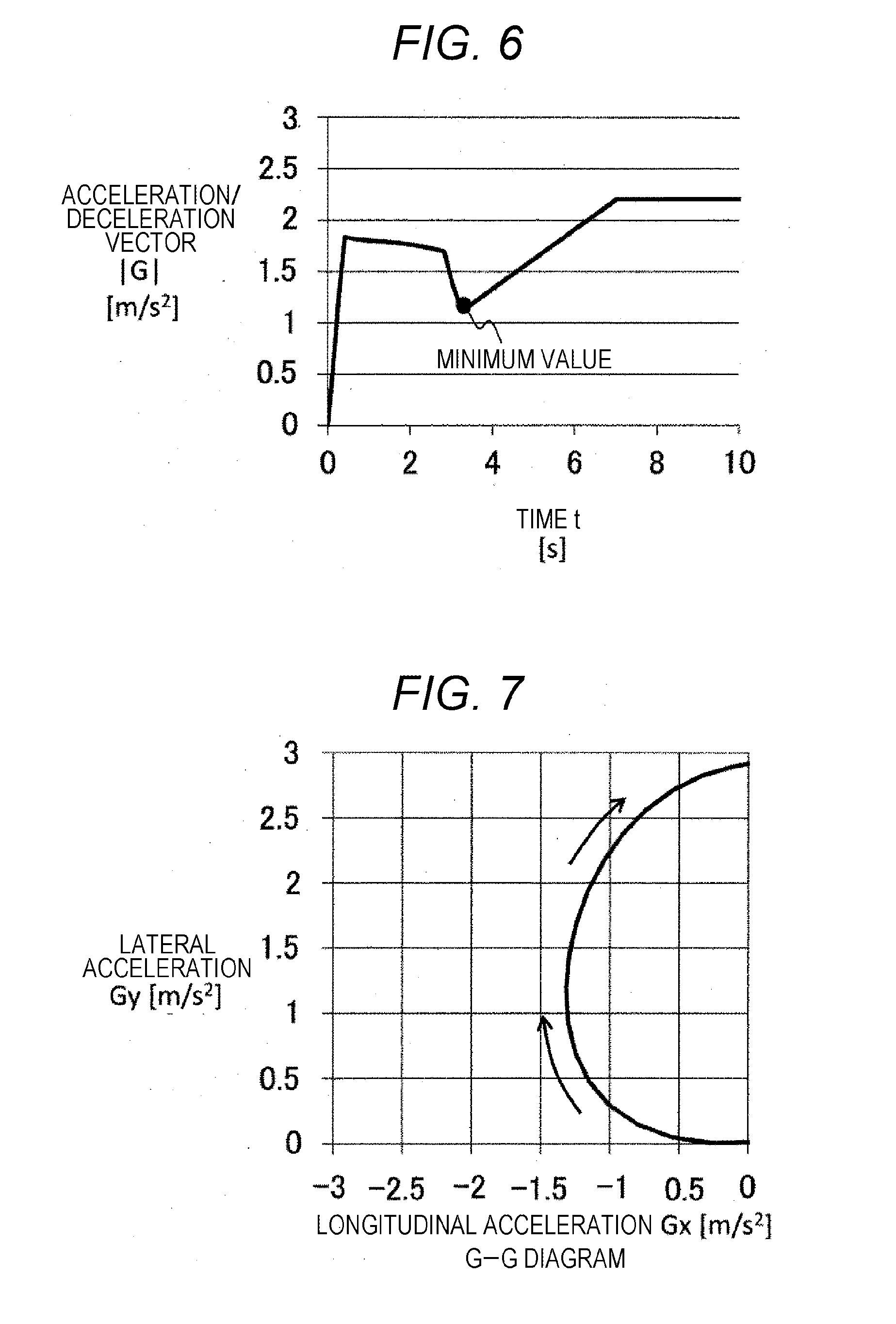 FIG. 6 is a diagram illustrating transition of a magnitude of a combined acceleration vector of the longitudinal acceleration and the lateral acceleration in FIG. 5.