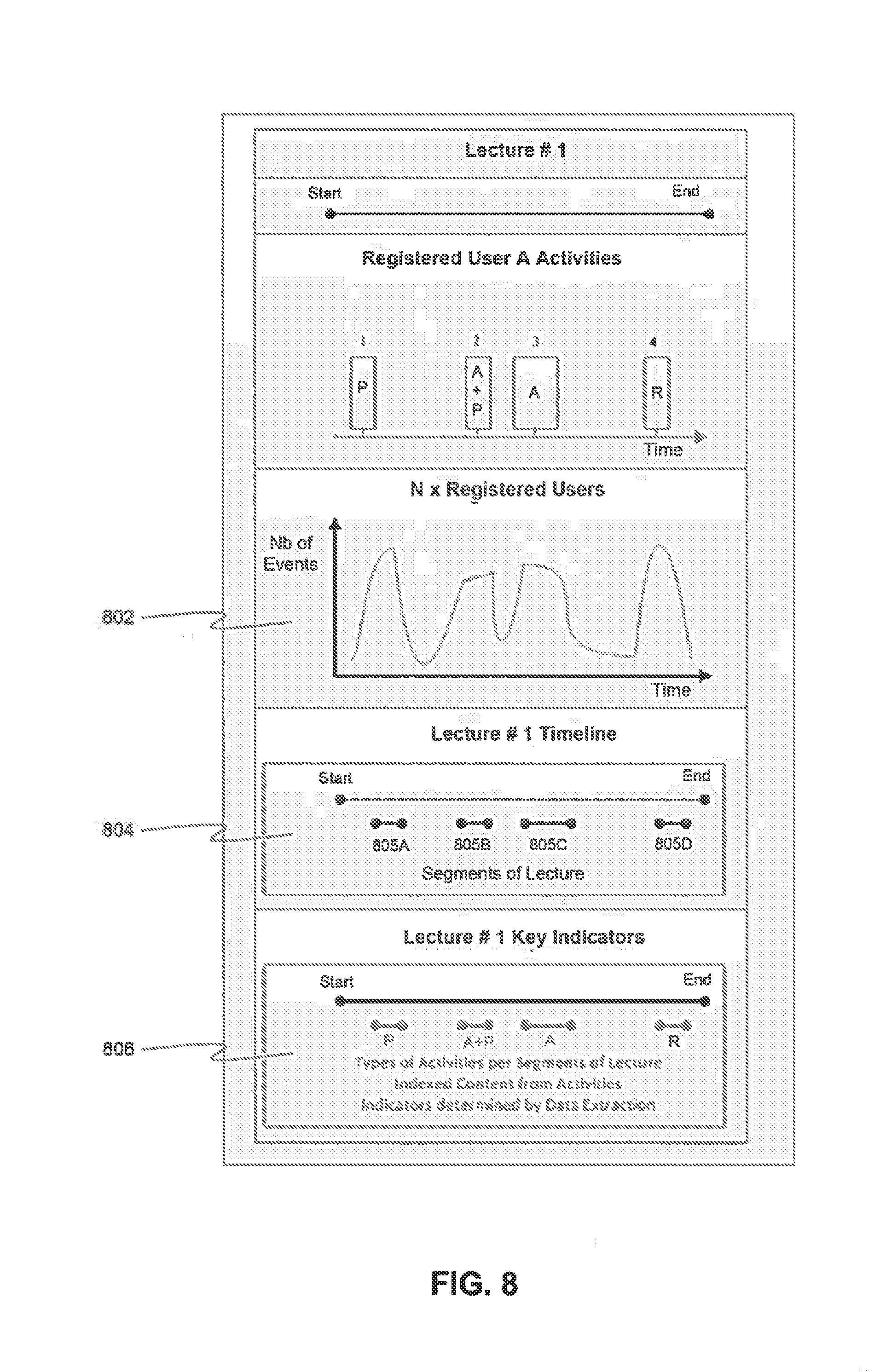 provide a recording of the lecture for playback at a plurality of user devices, each user device of the plurality of user devices accessing the online platform; receive from each of the plurality of user devices, a plurality of events captured that occurred during the playback of the recording of the lecture at the respective user device, wherein each event of the plurality of events is associated with a time stamp corresponding to a time at which a user of the user device performed a corresponding activity associated with the online platform; cluster the plurality of events based at least on an activity type associated with the captured events to generate a plurality of clusters of events, wherein the activity type include passive, active, and recall activities; generate, a plurality of clips of the recording of the lecture based on the plurality of clusters of events, each clip including a portion of the recording of the lecture, the portion beginning and ending at times within the recording identified based on the time stamps associated with one of the plurality of clusters of events; and generate a playlist including the plurality of clips of the lecture. 12. The non-transitory computer-readable storage medium of rank the plurality of clusters of events based on a number of events in each cluster; select one or more of the clusters of events based on the ranking; and generate a clip of the lecture corresponding to each of the selected clusters. 13. The non-transitory computer-readable storage medium of for each of the plurality of clips, extracting a key indicator of the lecture from the captured events corresponding to the clip; and generating a timeline of the lecture based on the time stamps of the captured events corresponding to the one or more clips, the timeline mapping each extracted key indicator to a time within the lecture. 14. The non-transitory computer-readable storage medium of associating each key indicator with a time in the lecture based on the time stamps of the captured events associated with a corresponding clip; and generating the timeline to illustrate the key indicators at the respective associated times in the lecture. 15. The non-transitory computer-readable storage medium of selecting a time in the recording of the lecture for a beginning of the clip based on a time stamp associated with an early event in a cluster of events. 16. The non-transitory computer-readable storage medium of 17. The non-transitory computer-readable storage medium of ranking the clusters based on a number of events in each cluster; and selecting one or more of the highest-ranked clusters. 18. The non-transitory computer-readable storage medium of ranking the clusters based on a percentage of the users accessing the lecture who performed activities associated with the events in the cluster; and selecting one or more of the highest-ranked clusters. 19. The non-transitory computer-readable storage medium of 20. The non-transitory computer-readable storage medium of