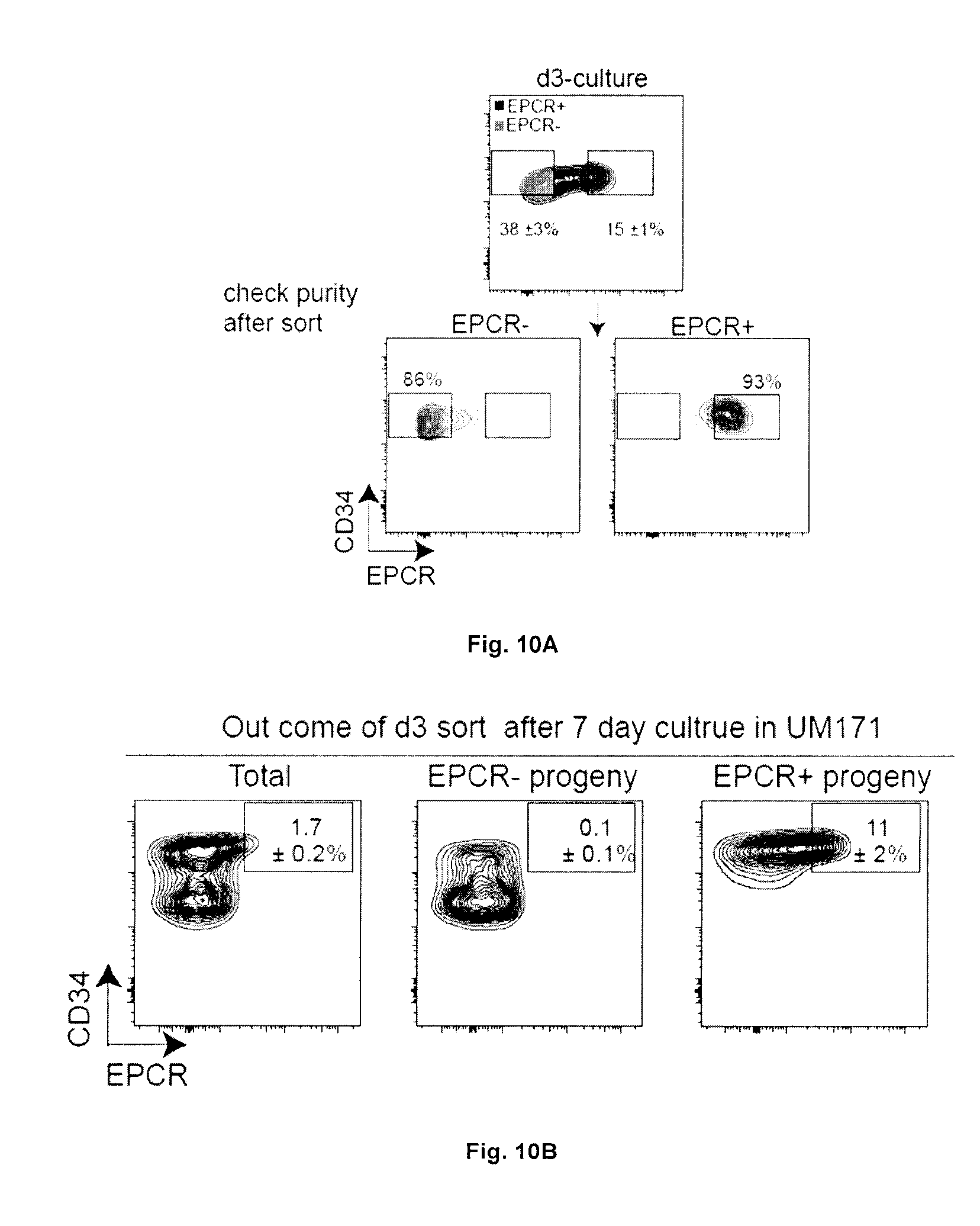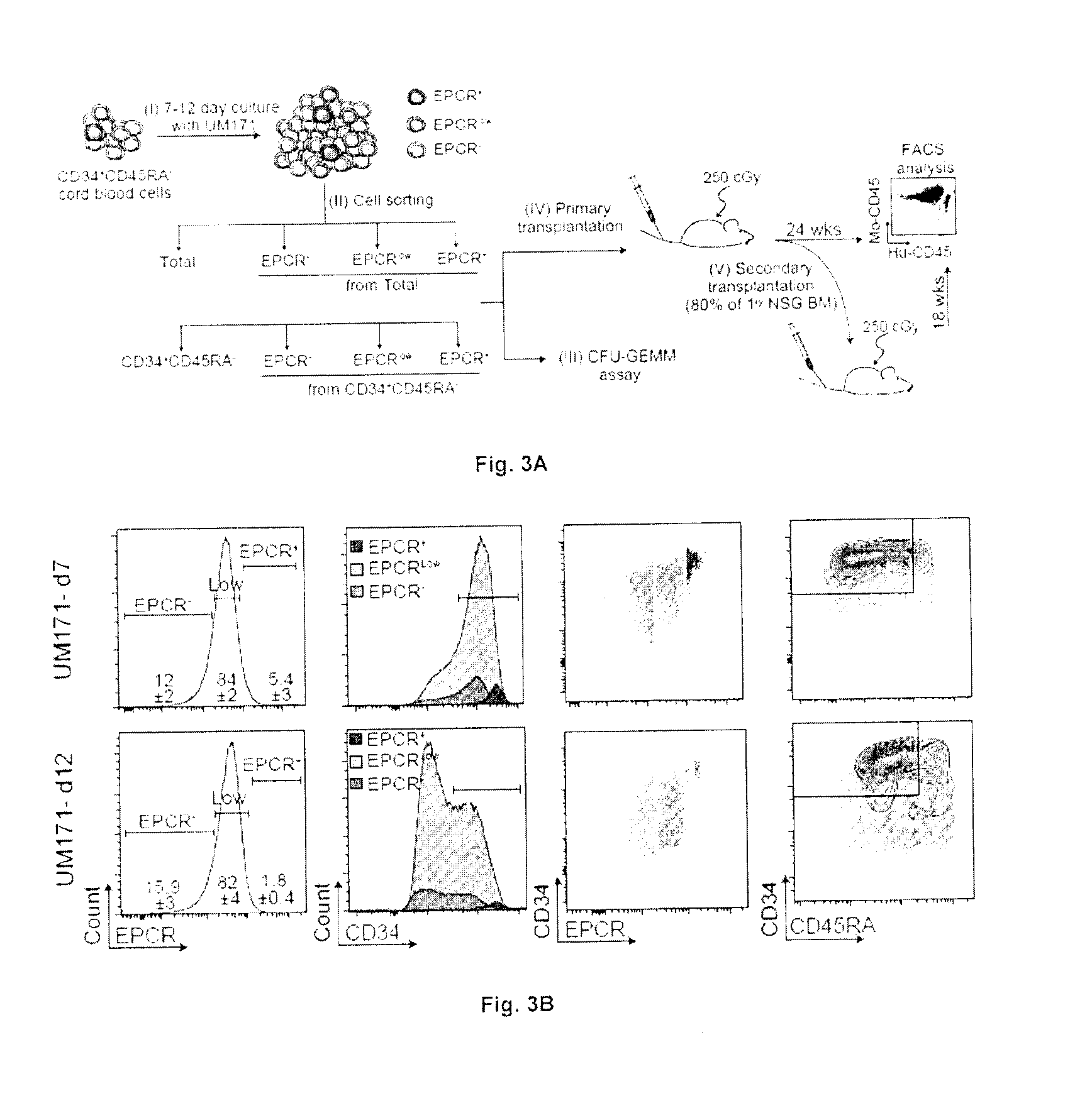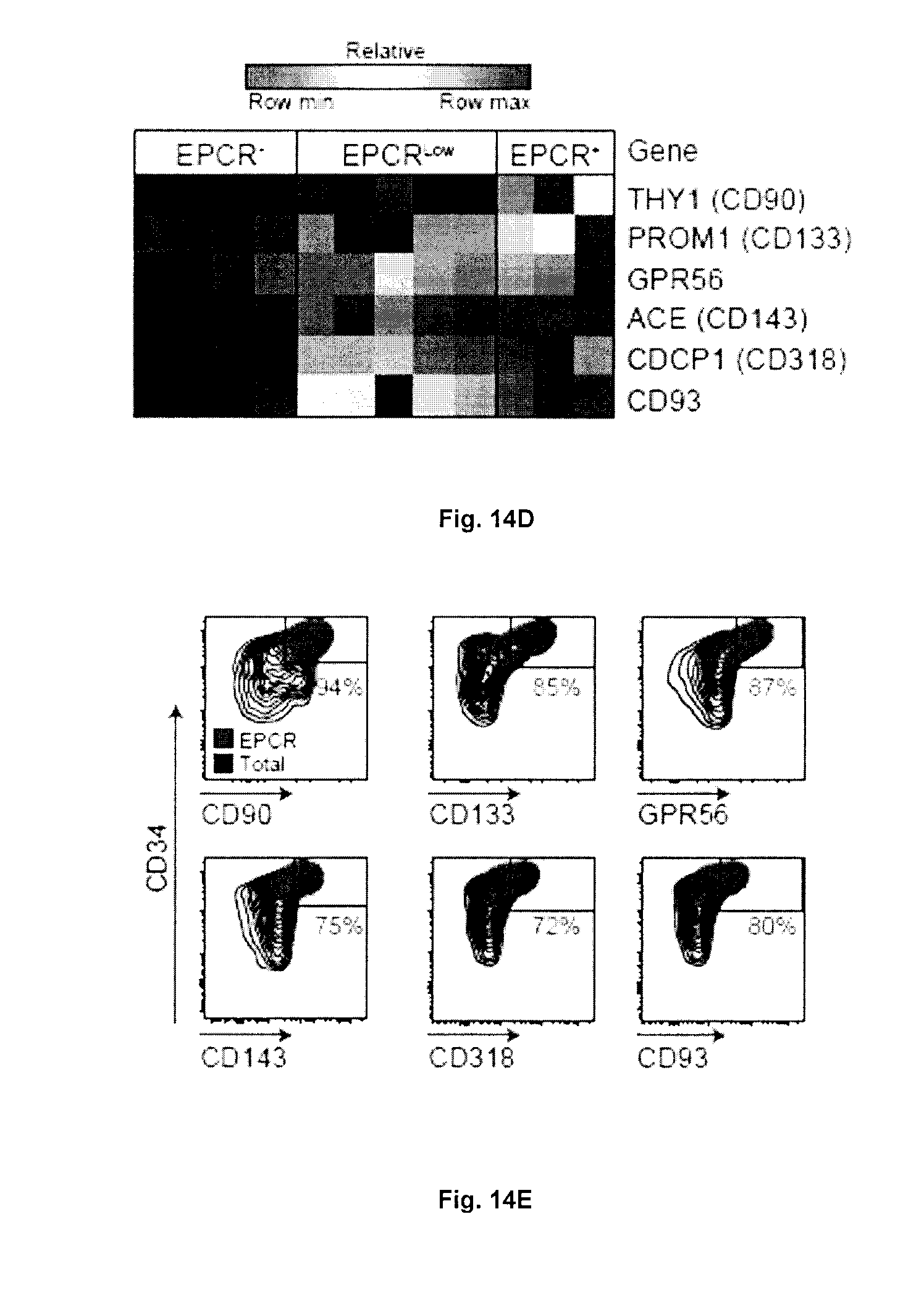 In a supplemental embodiment, the EPCR+ cells are further enriched prior or after the selecting of the EPCR+ cells by harvesting CD34+, CD38+, CD90+, CD45RA+, CD133 and/or CD49f+ cells.