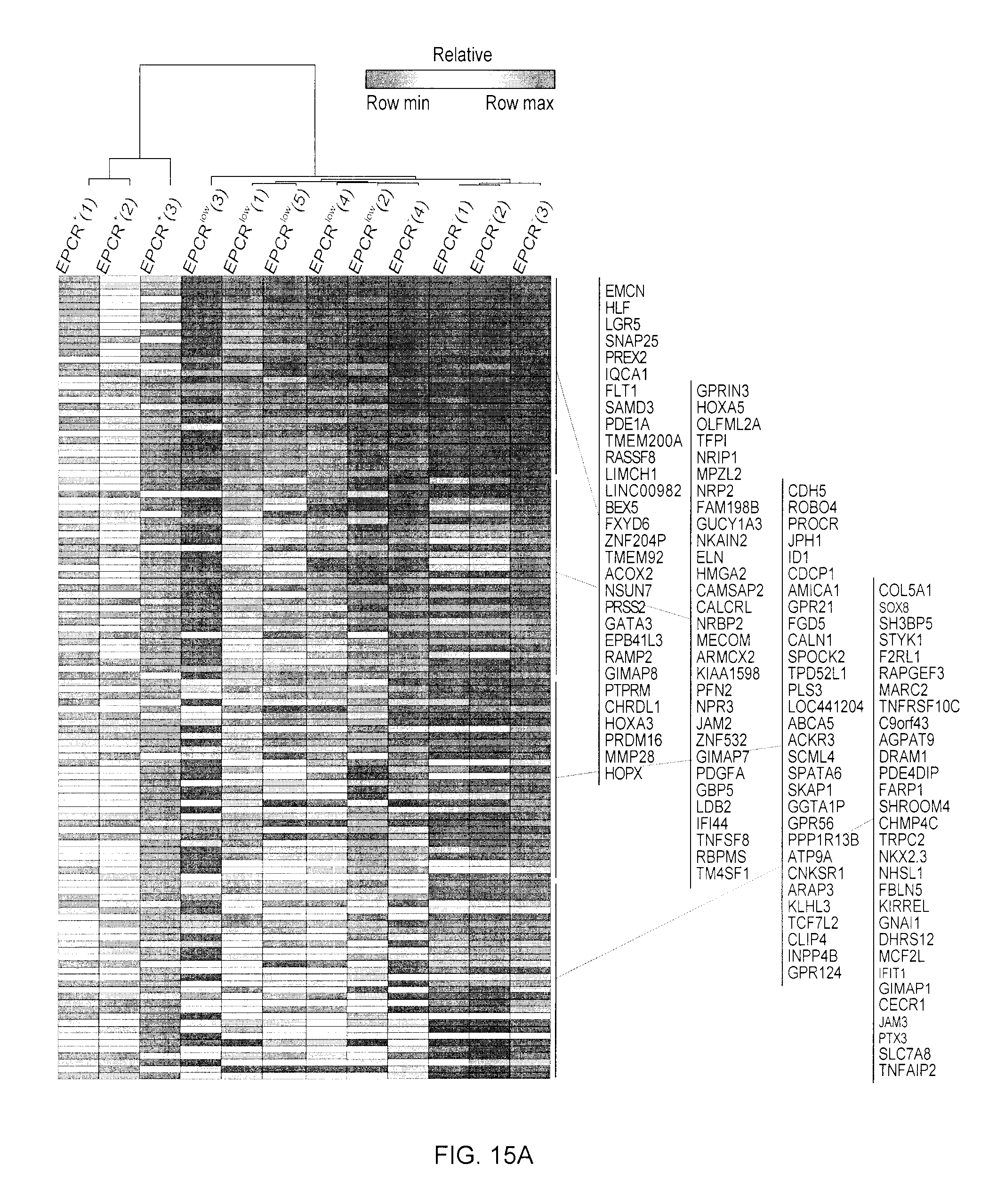 6: The method of claim 1, wherein said EPCR+ cells are further enriched prior or after the selecting of the EPCR+ cells by harvesting CD34+, CD38+, CD90+, CD45RA+, CD133 and/or CD49f+ cells.