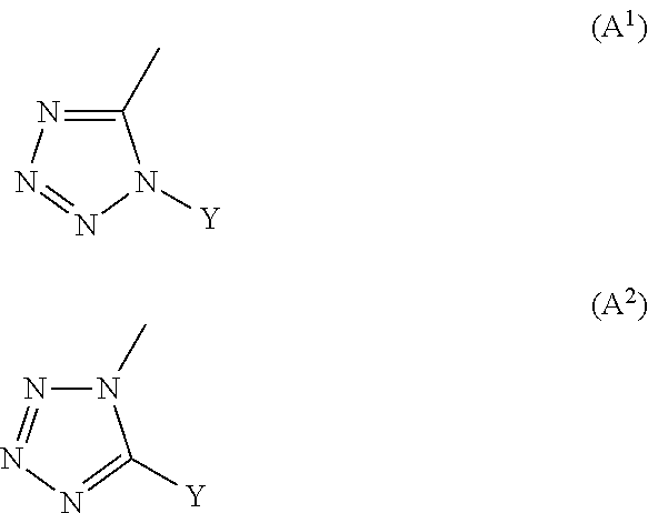 X represents a hydrogen atom; A represents a tetrazoyl group of formula (A1): wherein Y represents an alkyl group; and