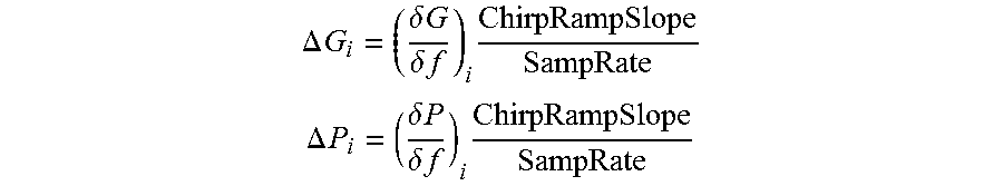 ΔGi=(δGδf)iChirpRampSlopeSampRateΔPi=(δPδf)iChirpRampSlopeSampRate