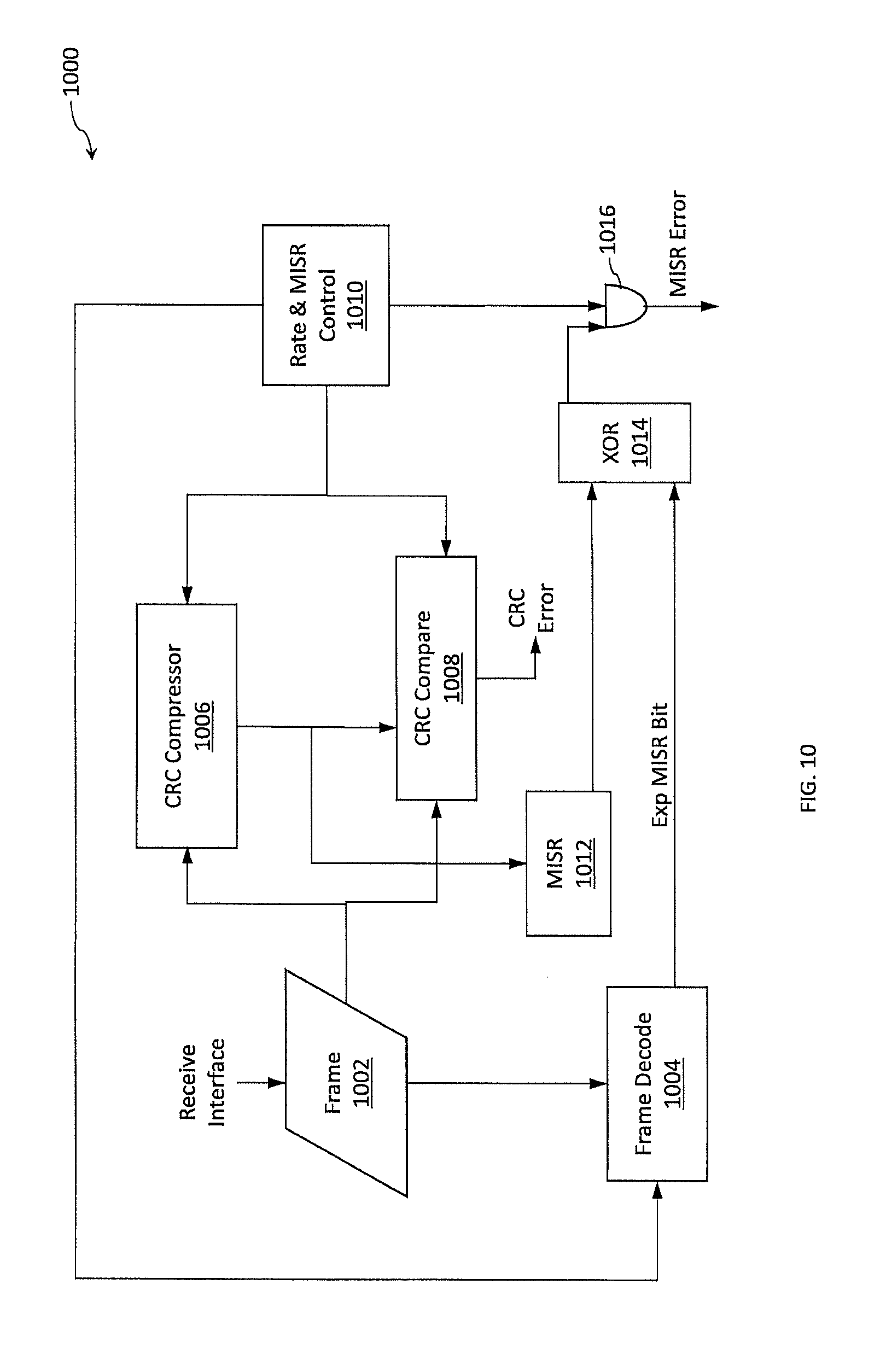 generating a calculated single check bit based at least in part on bits in the received frames of bits; and comparing the received source single check bit to the calculated single check bit, wherein a transmission error has occurred when the received source single check bit does not match the calculated single check bit; and transmitting an error indication to the transmitter based on determining that a transmission error has occurred.